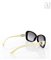 Occhiale in acetato nero e crema, aste decorate con losanghe girevoli logate.