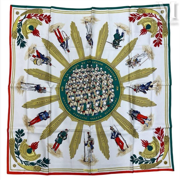 HERMÈS Foulard Hermès, motifs "à la gloire de la légion étrangère" en twill...