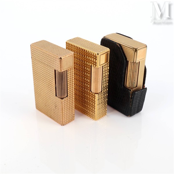 Lot 394 | S.T. DUPONT Trois briquets Dupont en plaqué or à décor divers. Signé et...