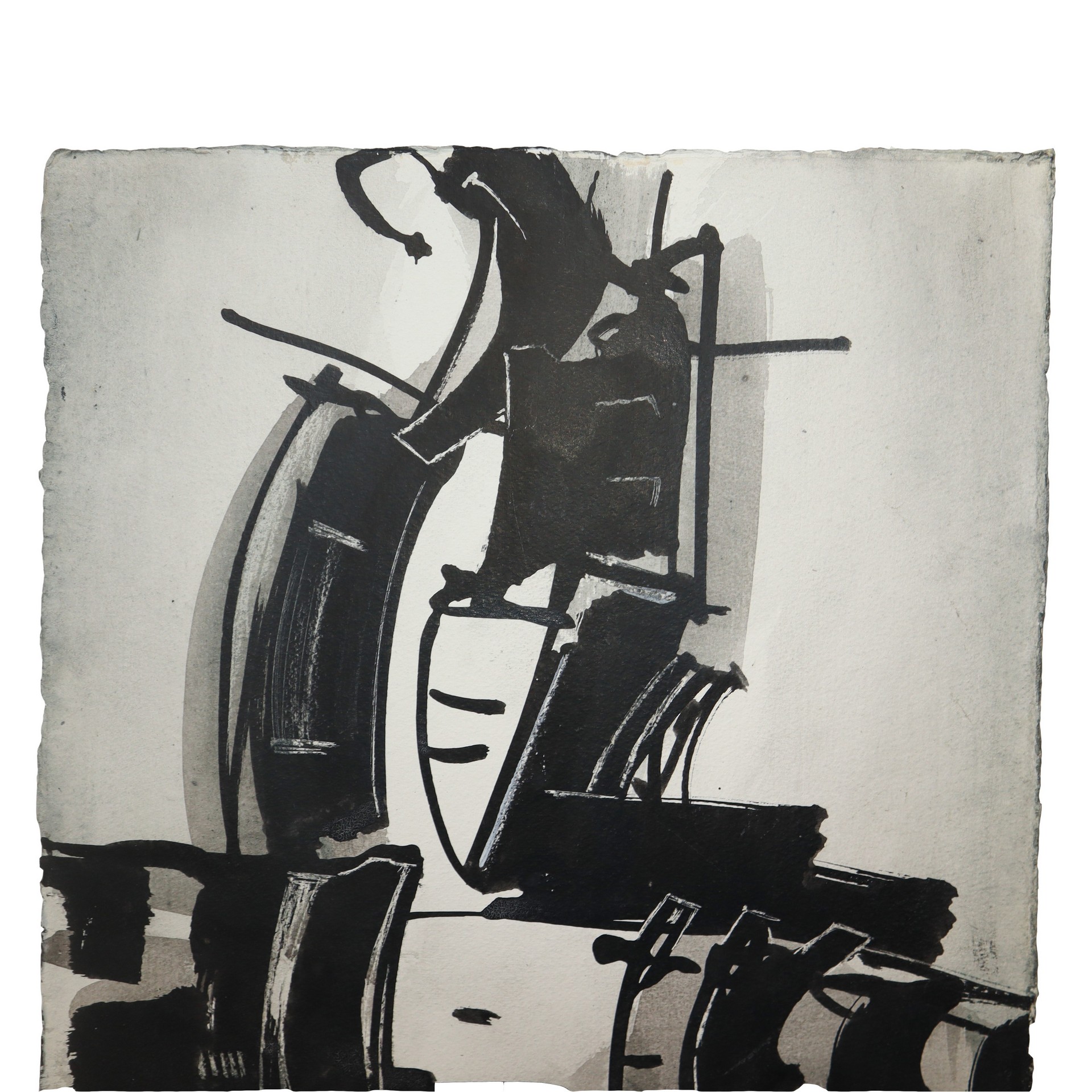 Gianni Bertini (Pisa 1922 - Caen 2010) - Astratto nei toni del grigio e nero, 1955 h cm 55x39 in cornice h cm 73X56 Tecnica mista su carta Firmato e datato in basso a destra. Certificato di autenticità Galleria Orler