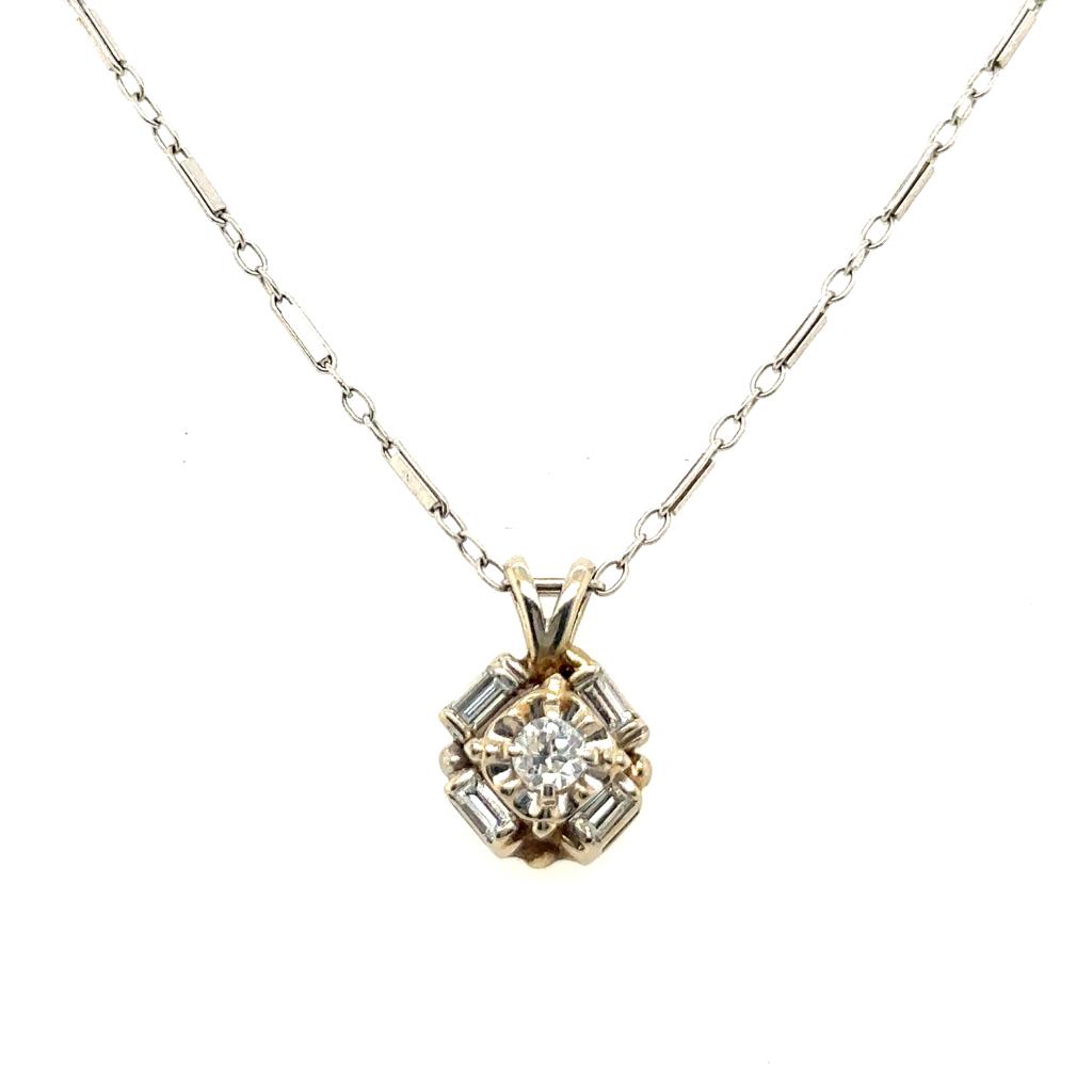 GIROCOLLO IN ORO BIANCO 14K 3.57 GR CON DIAMANTI PER 0.40 CARATI TAGLIO BUGGETTE + DIAMANTI PER 0.15 CARATI TAGLIO BRILLANTE GVS VINTAGE CERTIFICATO AIG - PND30406 - COMMISSIONE D’ASTA 25%