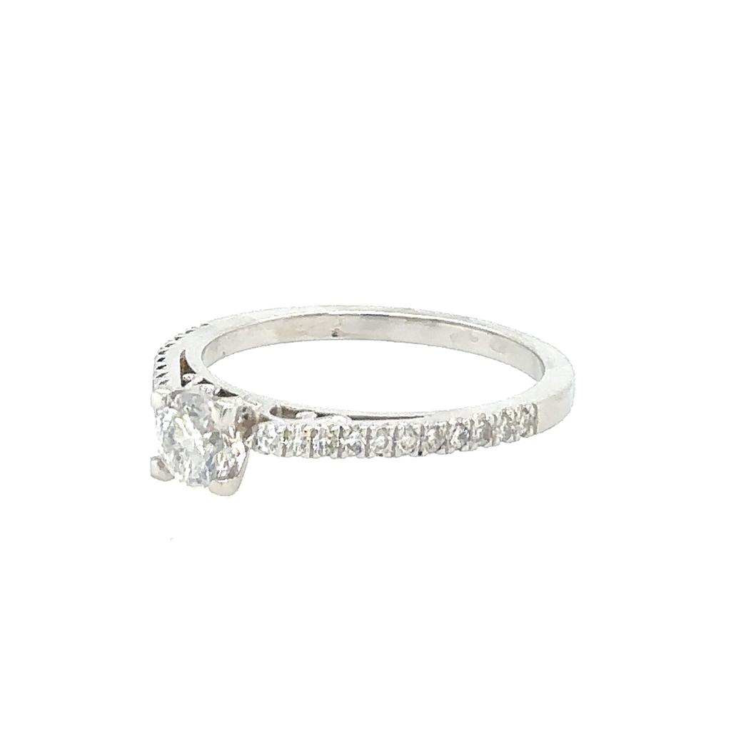 ANELLO IN ORO 14K CON DIAMANTE CENTRALE DA 0.45 CT COLORE F PUREZA SI2 + DIAMANTI PER 0.22 CT F/VS - TAGLIA 7 - RNG30207 - COMMISSIONE D’ASTA 25%