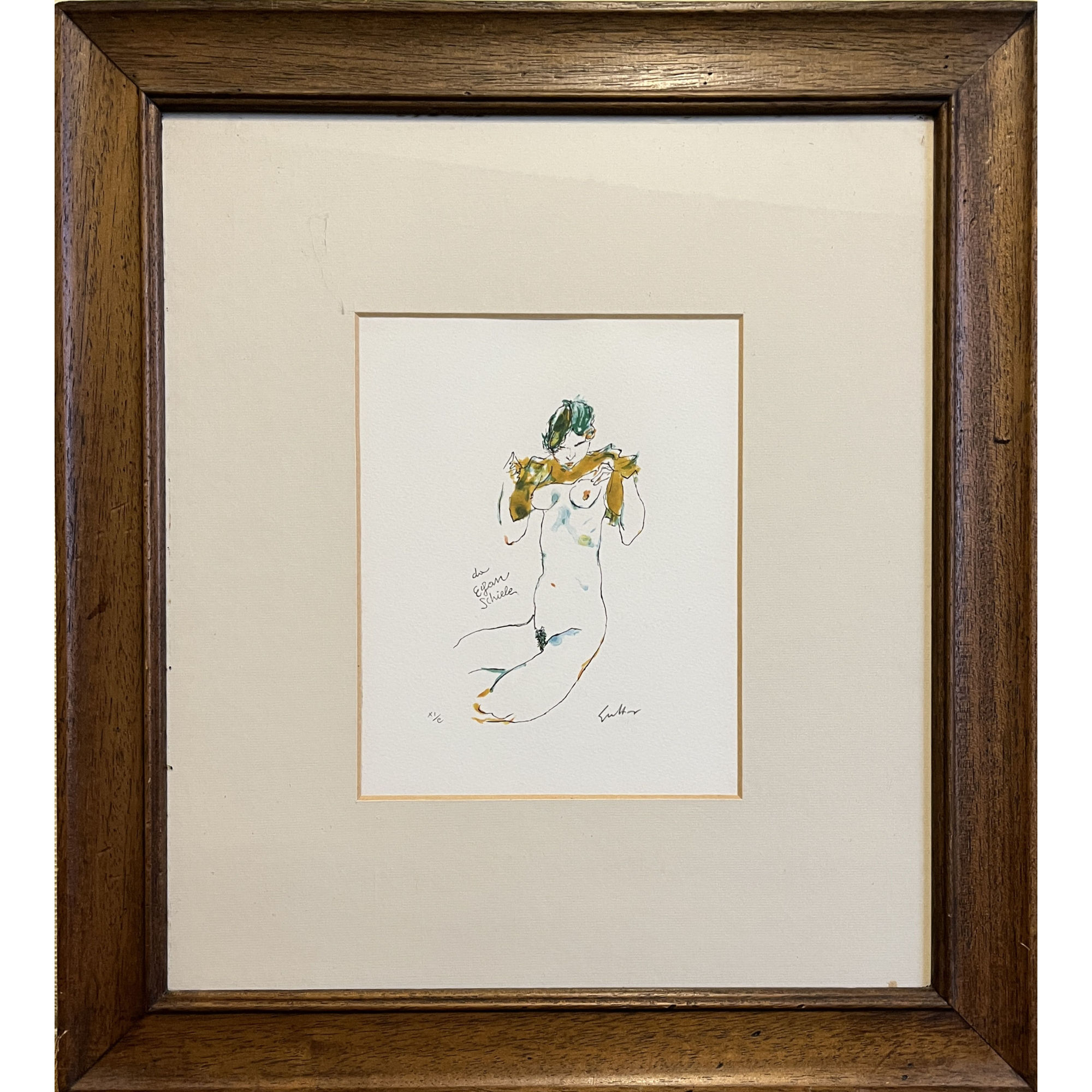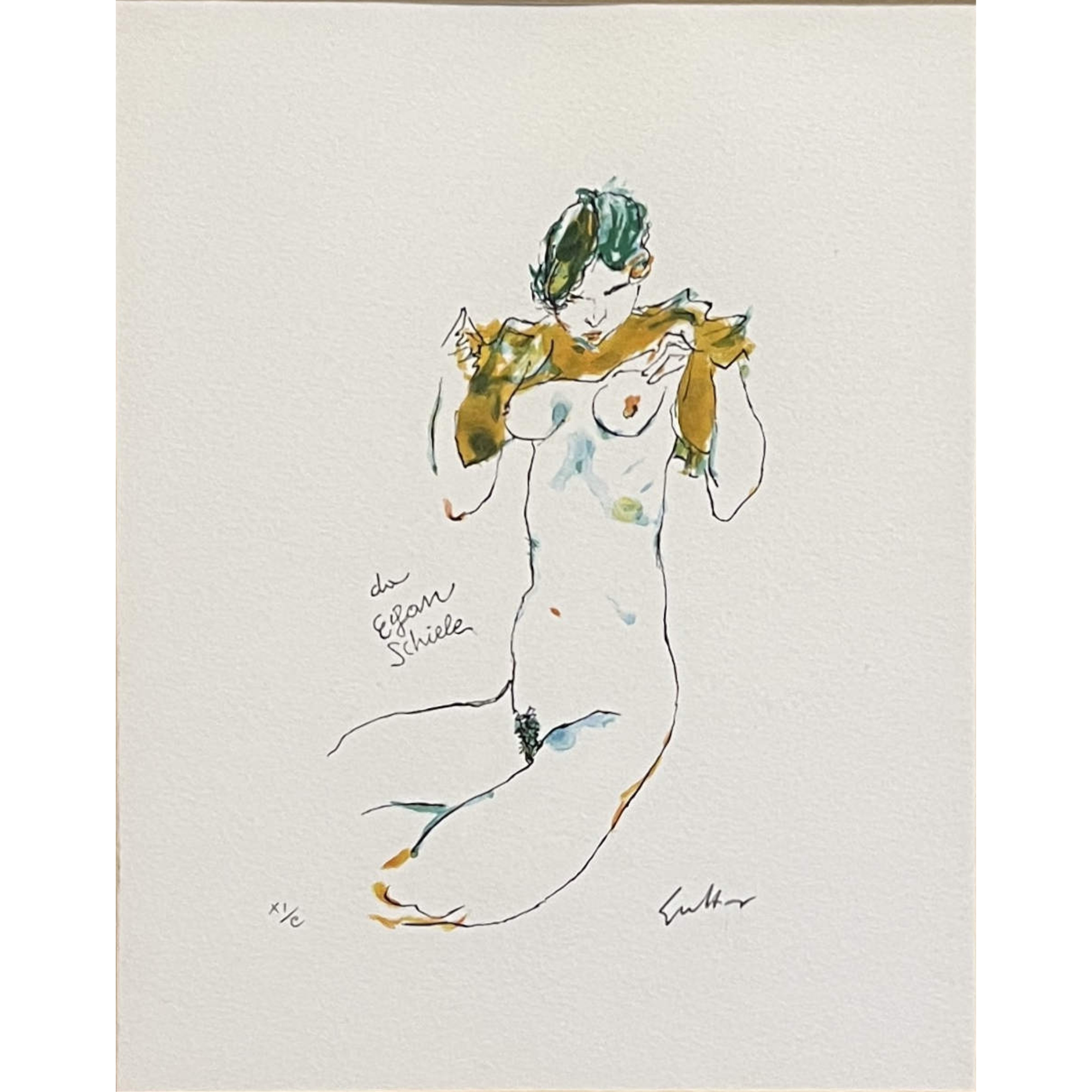Renato Guttuso, Litografia a colori "Da Egon Schiele". Cm 24x19,5. In cornice cm 54x49. Firmato in basso a dx.