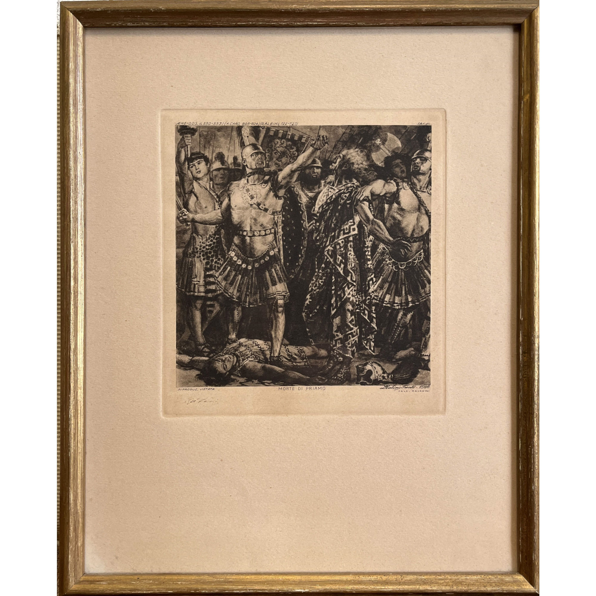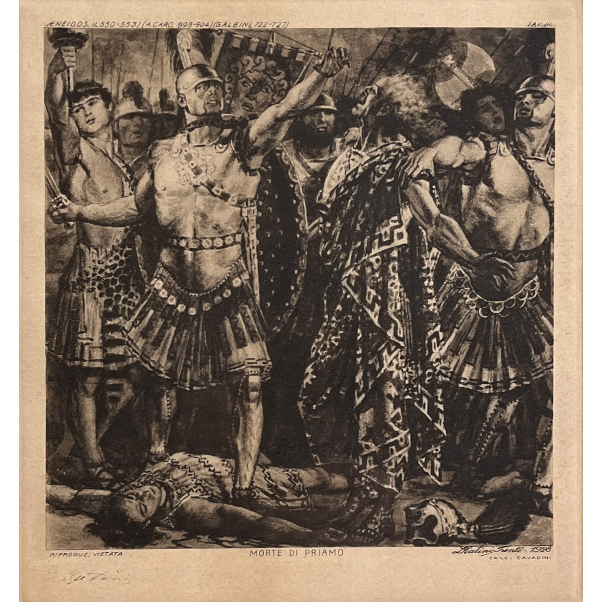 Luigi Ratini (1928), incisione dall'Eneide "Morte di Priamo", Libro II -...