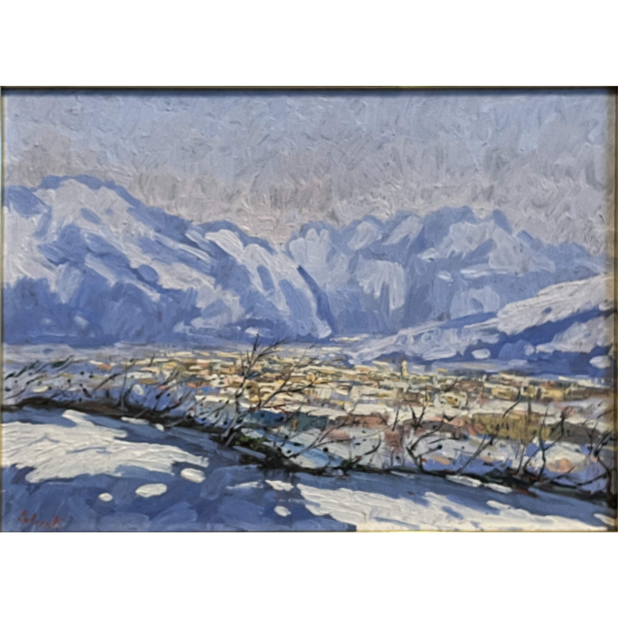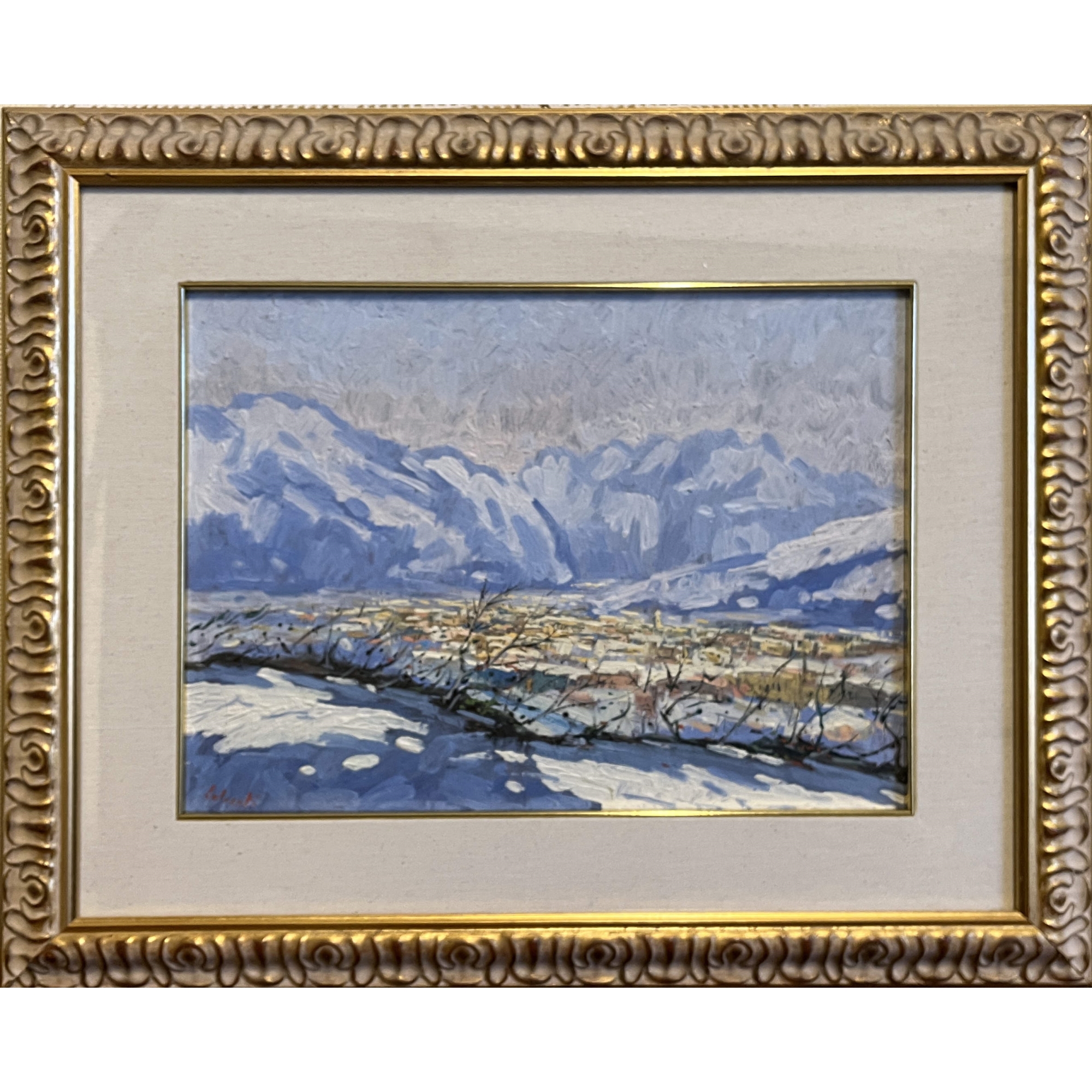 XX° sec., Paesaggio, iscrizione al retro "Il Ritrovo degli Artisti" di Trento. Cm 28x38. Firmato in basso a sx. In cornice