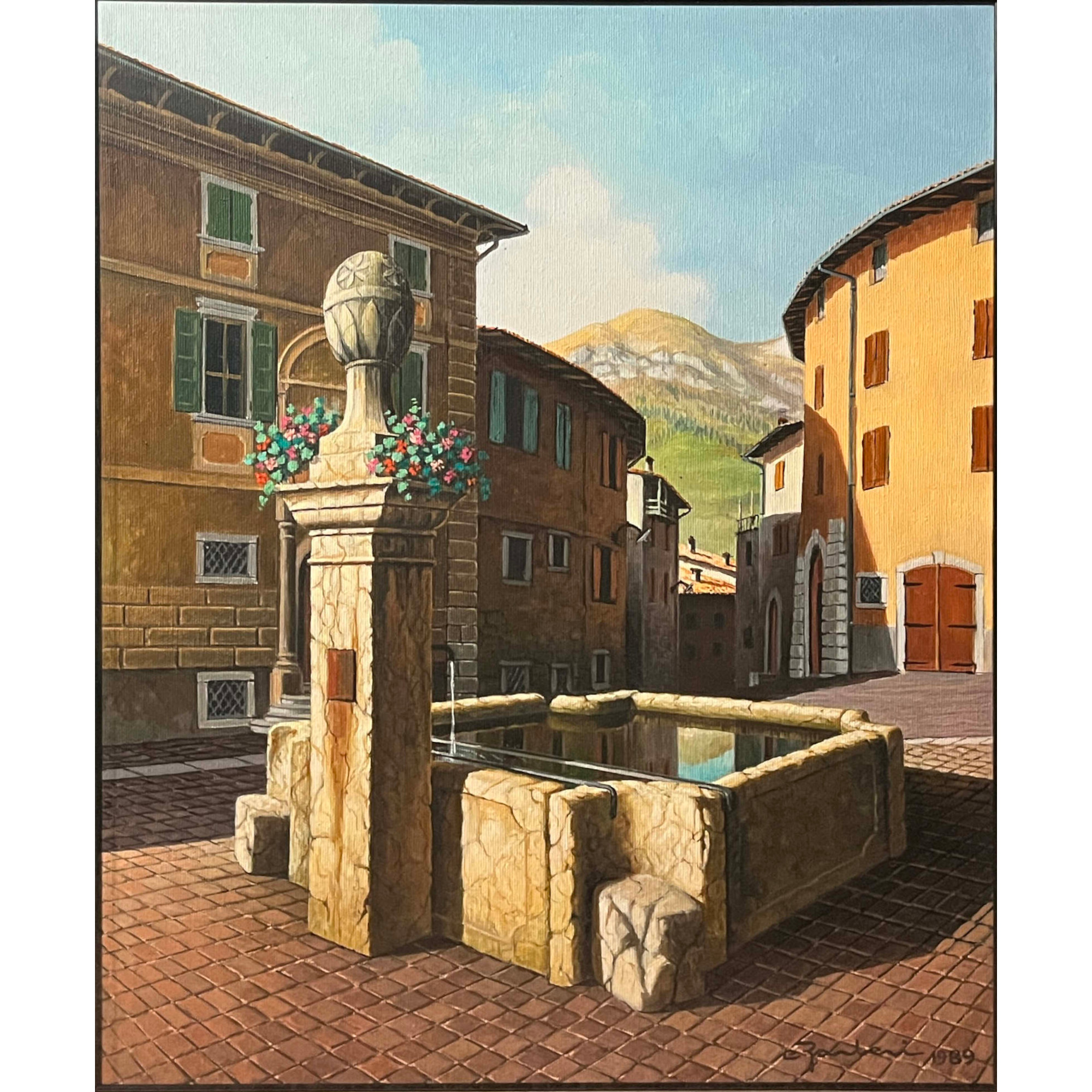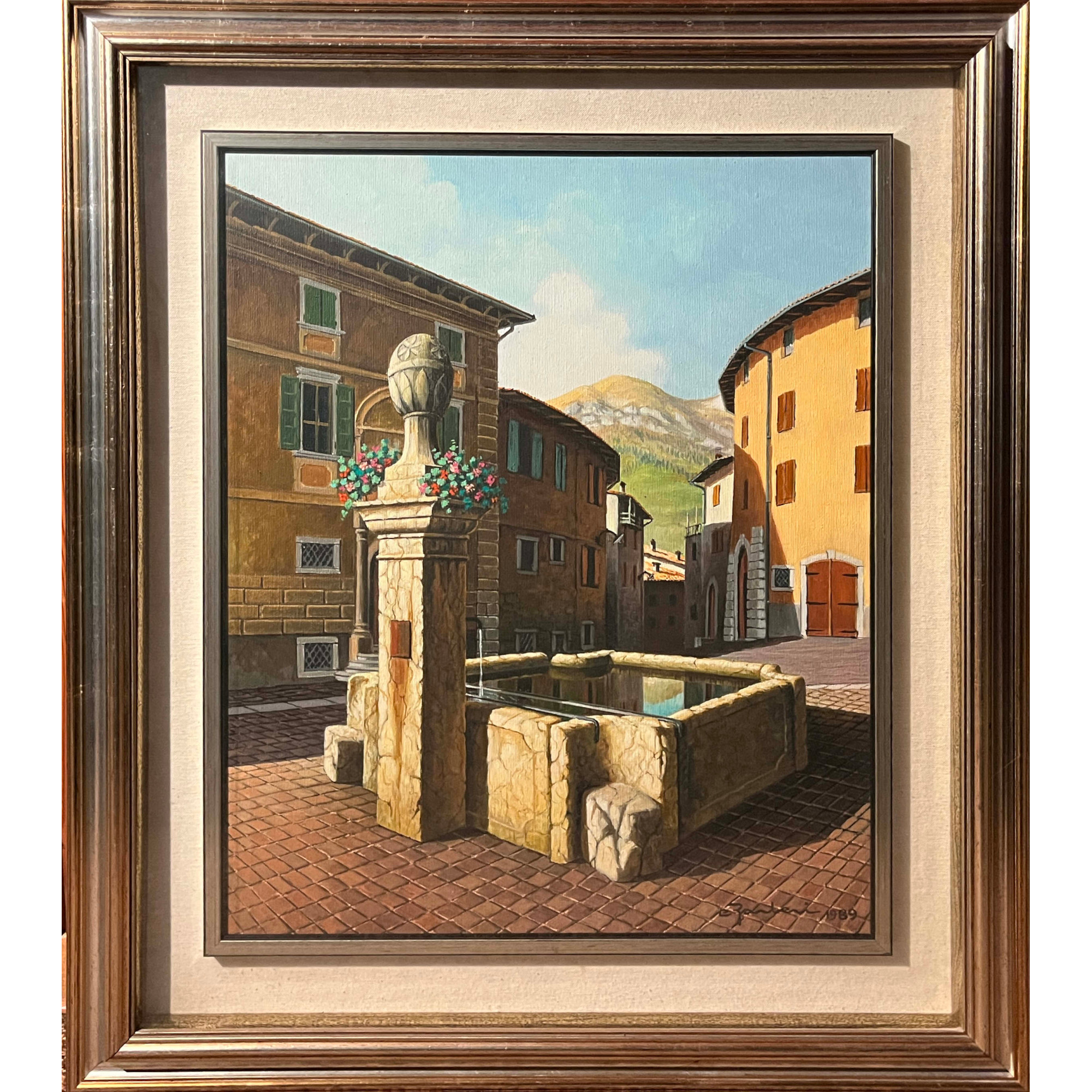 Lot 125 | Carmelo Barberi, Veduta di Brentonico (1989), olio su tela 49x40 in cornice...
