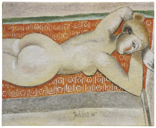 Lot 201 | Franco Gentilini "Nudo chiaro" 1956 olio su tela sabbiata cm 82x100,5 Firmato e
