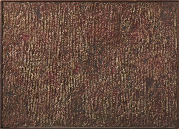 Nobuya Abe "Scrittura sconosciuta B" 1961 tecnica mista su compensato cm 48,5x67