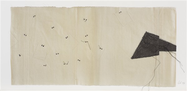 Maria Lai "Senza titolo" 1987 serigrafia con intervento in filo cm 32x64 Firmato