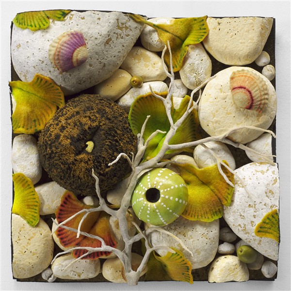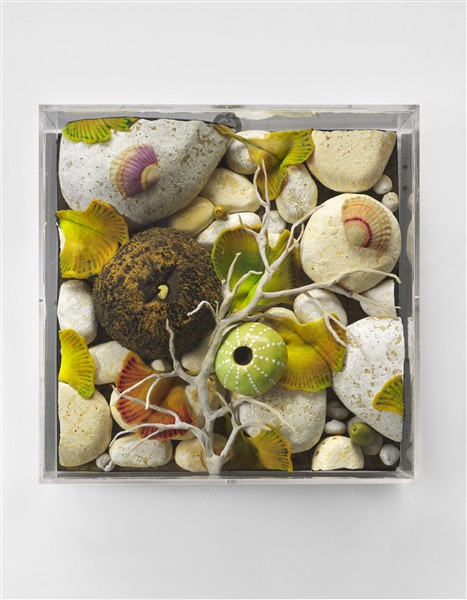Piero Gilardi "Spiaggetta con noce di cocco" 2002 poliuretano espanso in teca di