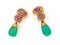 Petochi, coppia di orecchini pendenti in oro, smeraldi e rubini Oro giallo 750/000. Rubini in taglio ovale ct. 2,30, BURMA - MYANMAR, SENZA INDICAZIONE DI TRATTAMENTO TERMICO. Smeraldi in taglio goccia cabochon ct. 10 ca. Peso complessivo gr. 13,60. Corredati di certificazione gemmologica IGN n° 36554 del 11/12/24
