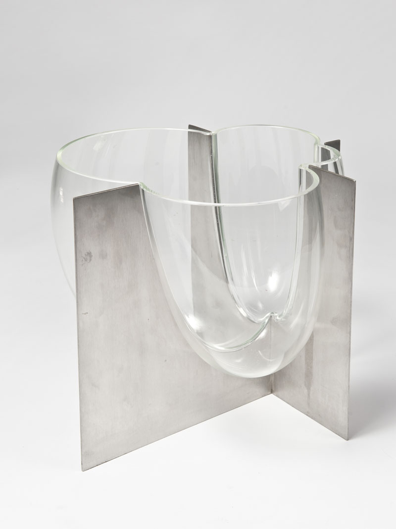 Carlo Nason (1936) - Vaso mod. "S509" in vetro soffiato trasparente quadrilobato, montato su supporto in acciaio, 1969 ca. (h cm 30)