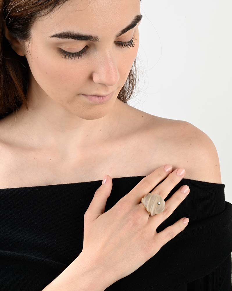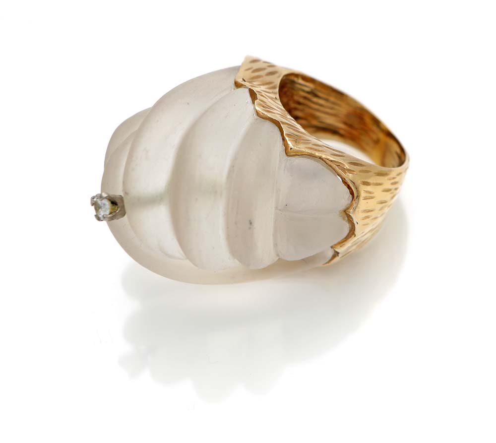 Anello da cocktail in oro, diamante e cristallo di rocca Misura 14 Oro giallo 750/000. Peso complessivo gr. 25,80