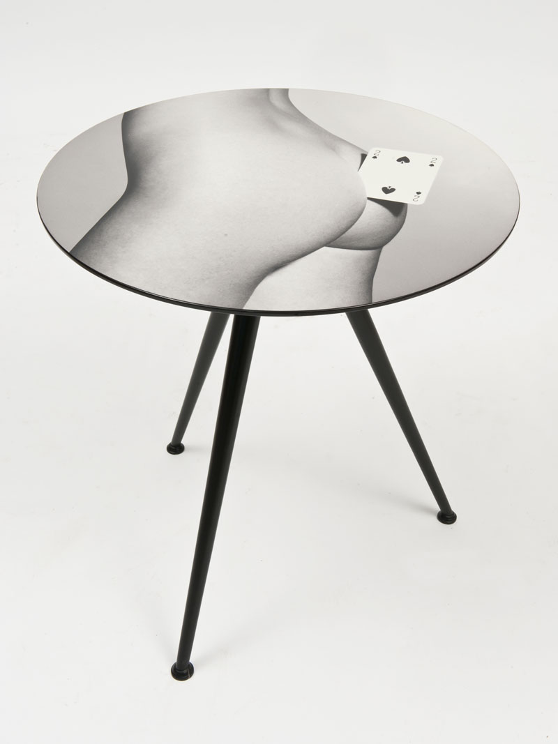 Toiletpaper - "Due di picche", tavolino tondo in edizione limitata. Piano in...