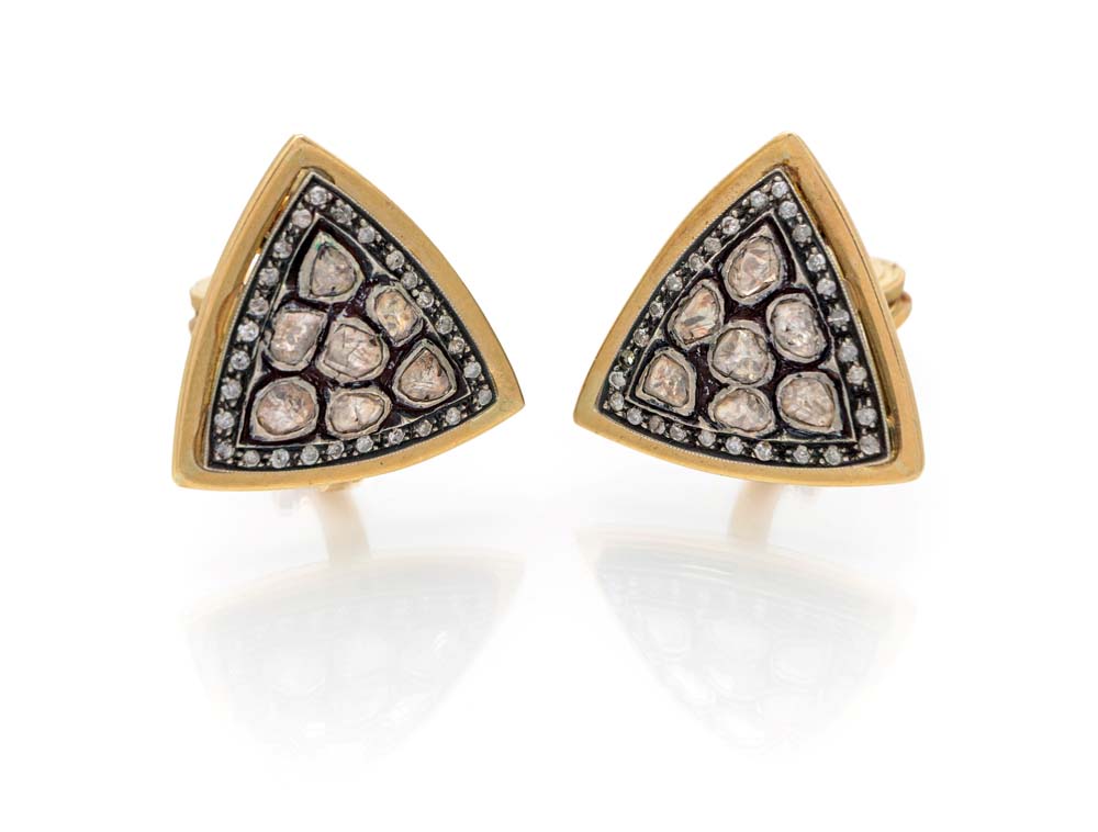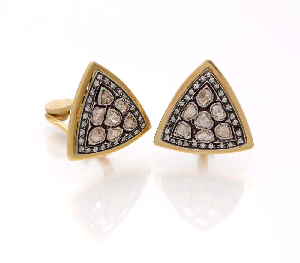 Lot 257 | Orecchini in oro, argento e diamanti mm 23 x 23 Oro giallo 750/000. Peso...