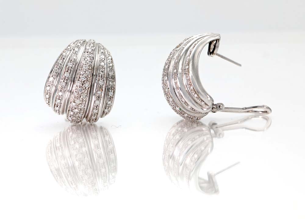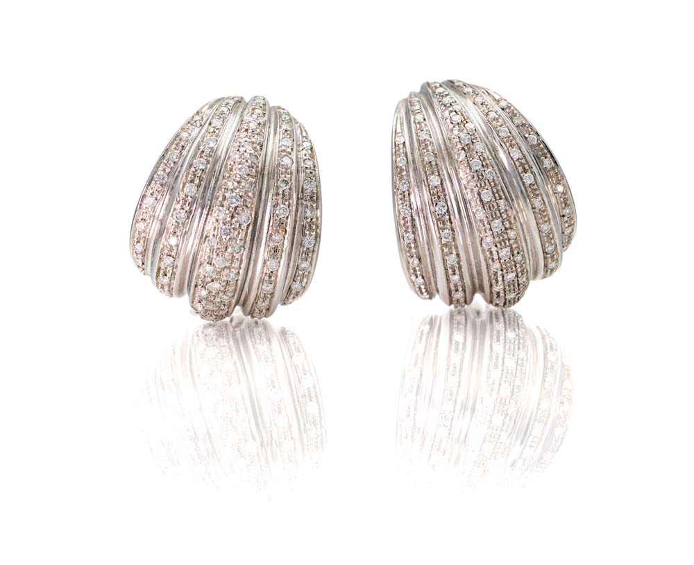 Coppia di orecchini in oro e brillanti Lunghezza cm 2,5 Oro giallo 750/000. Peso complessivo gr. 18,90