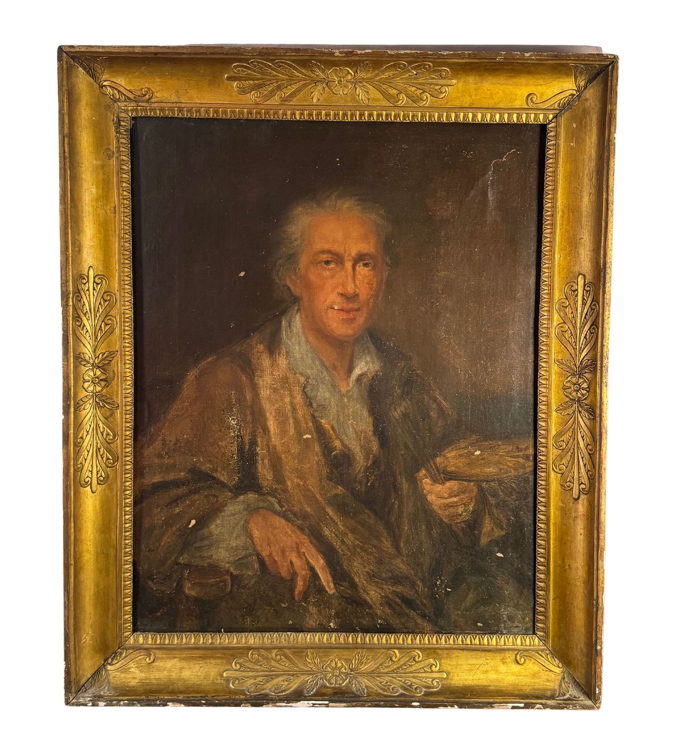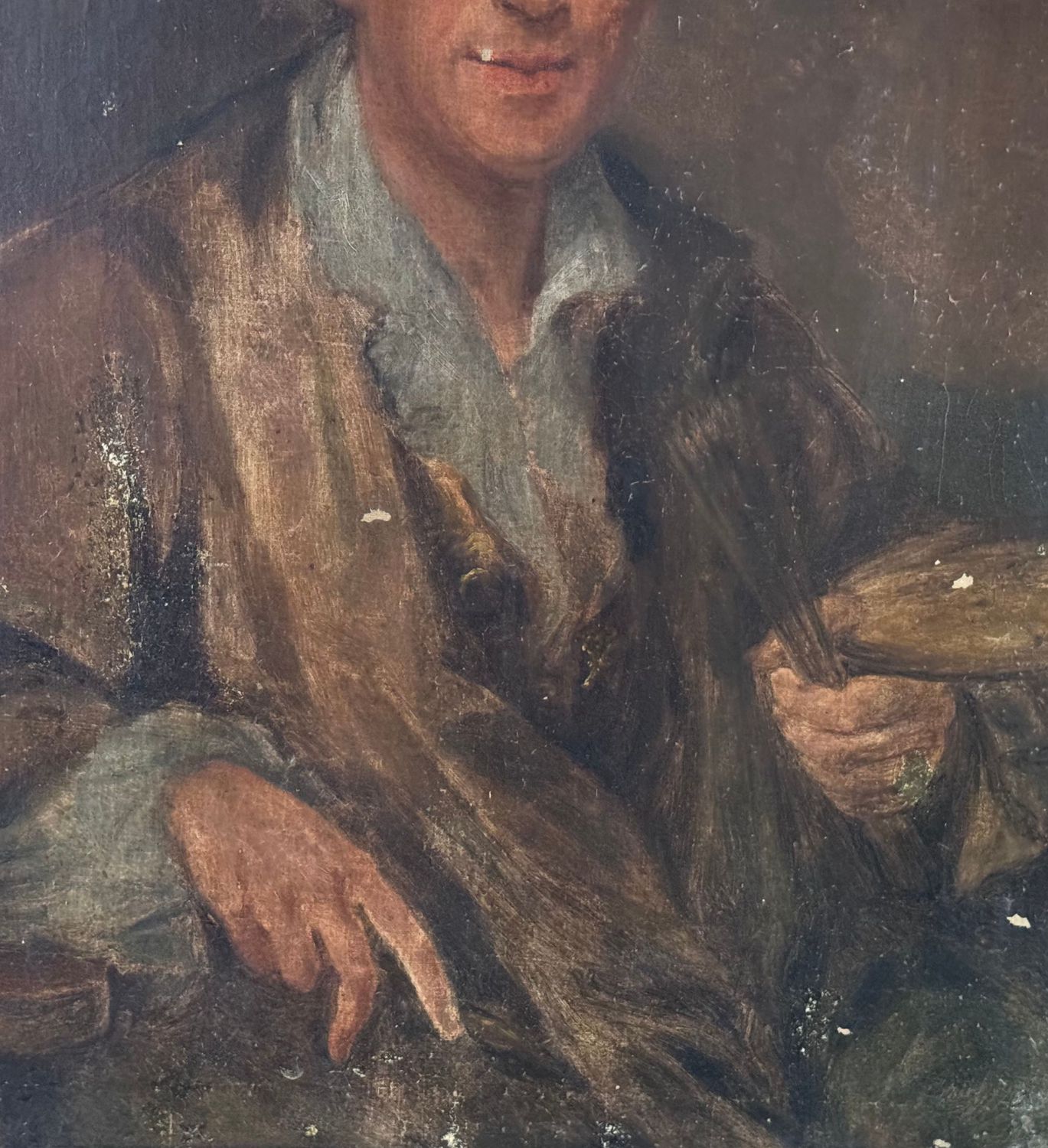 Dipinto olio su tela, periodo XIX secolo scuola Italiana, raffigurante Ritratto di pittore. Dimensioni compreso cornice: 81x99 cm. Dimensioni interno cornice: 66x83 cm. Da artista anonimo. Opera su tela originale, presenta segni di vissuto e punti con caduta di colore. Cornice offerta in omaggio al dipinto.