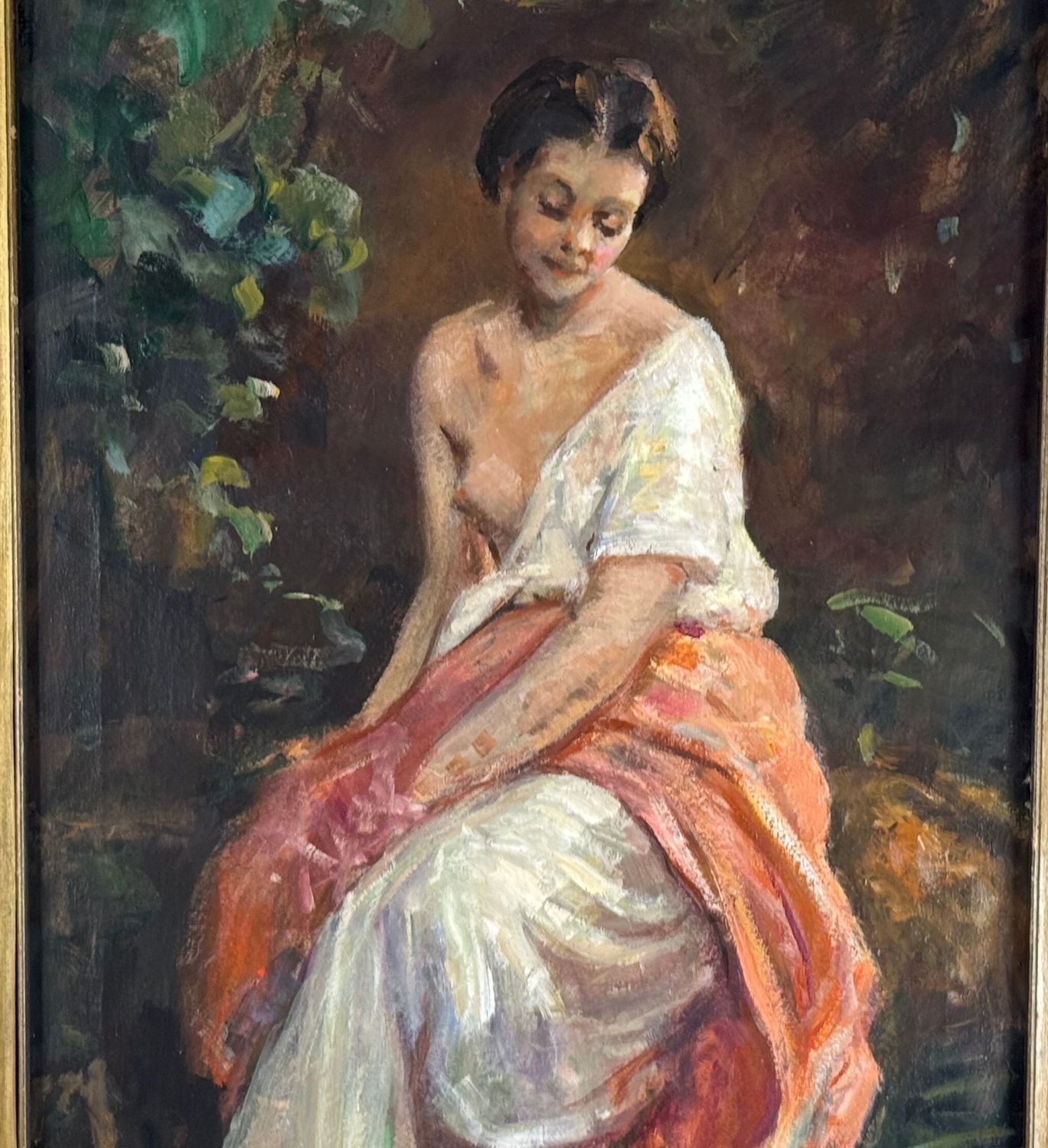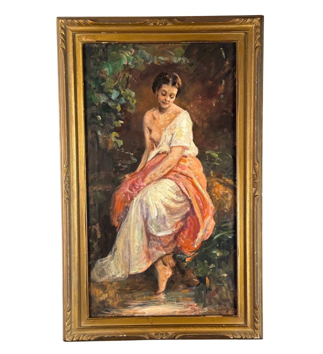 Dipinto olio su tela, periodo XX secolo scuola Italiana, raffigurante Giovane donna in giardino. Dimensioni compreso cornice: 94x59 cm. Dimensioni interno cornice: 80x45 cm. Artista anonimo. Opera in buone condizioni.