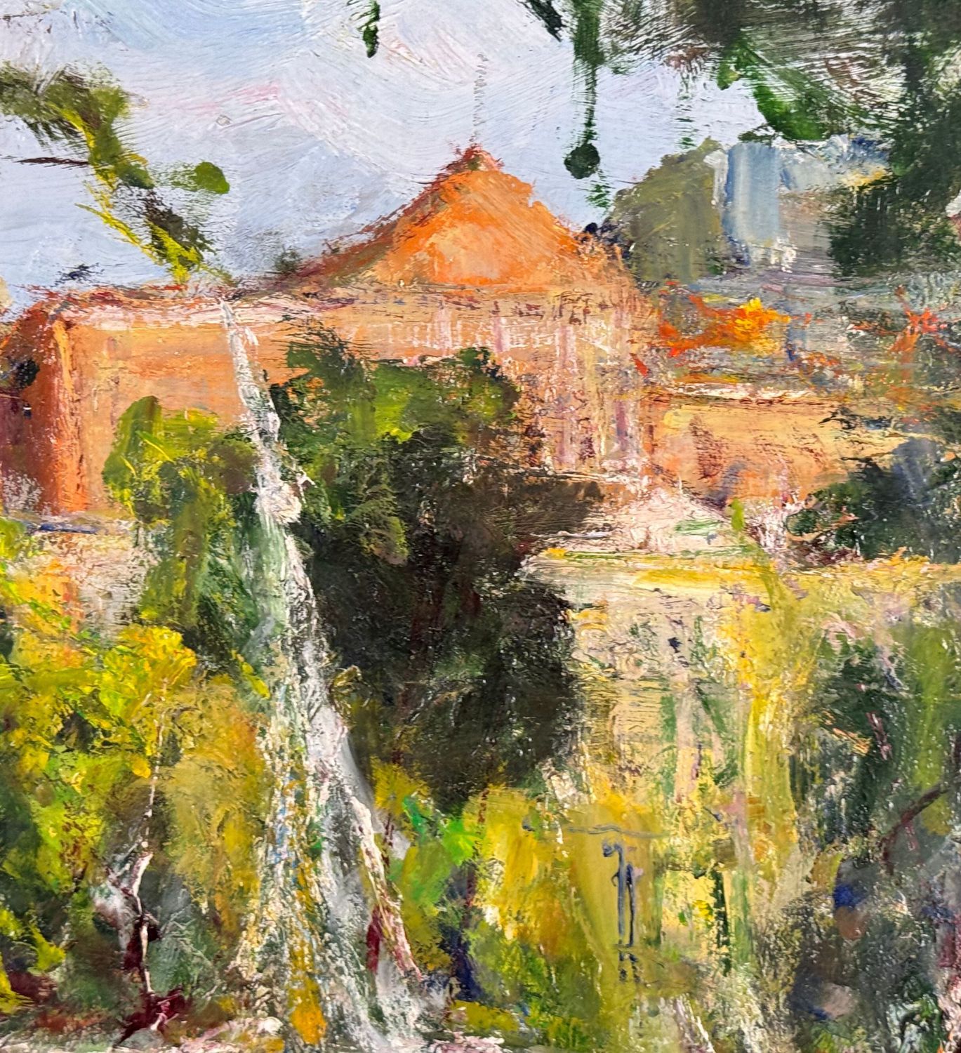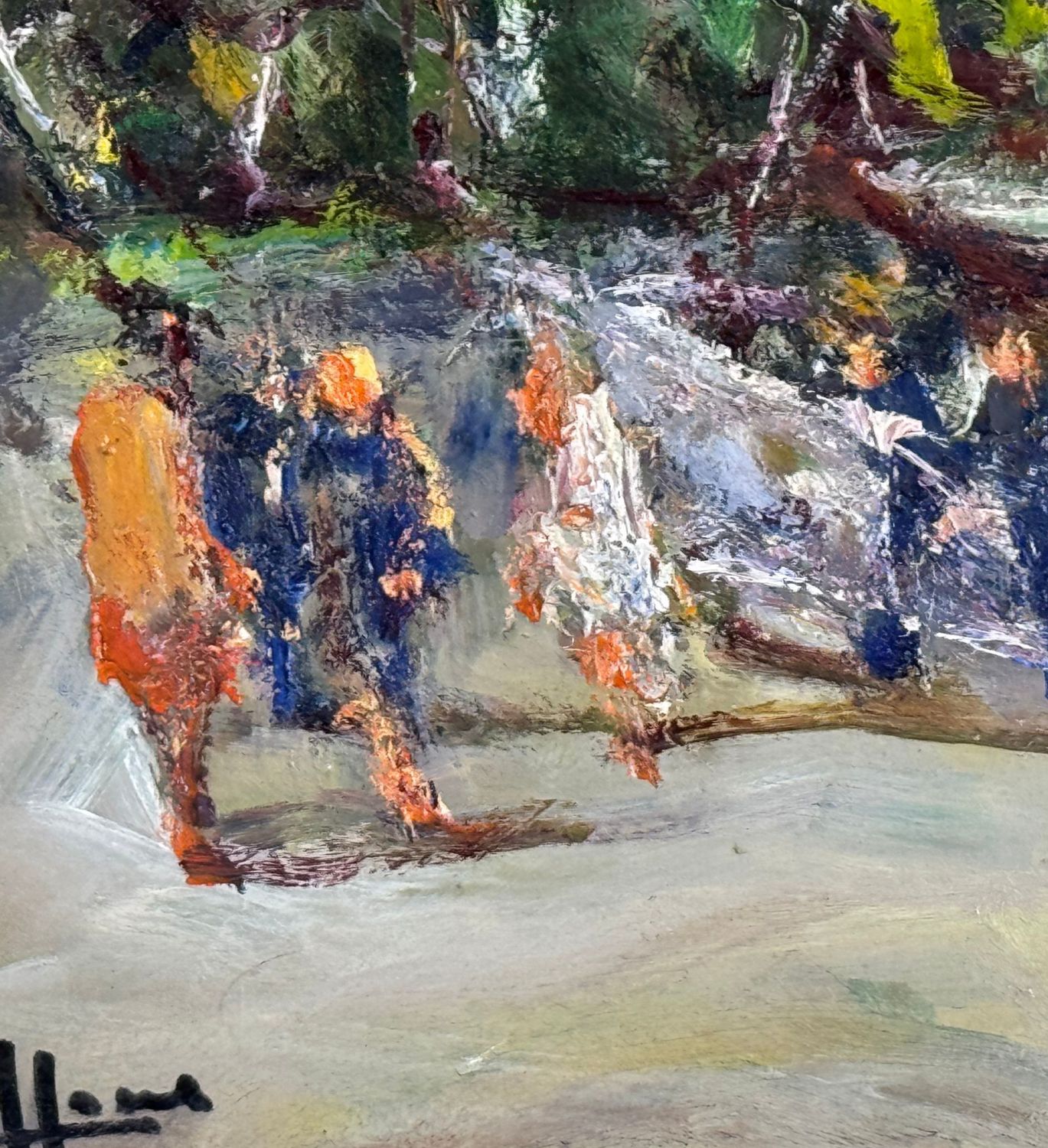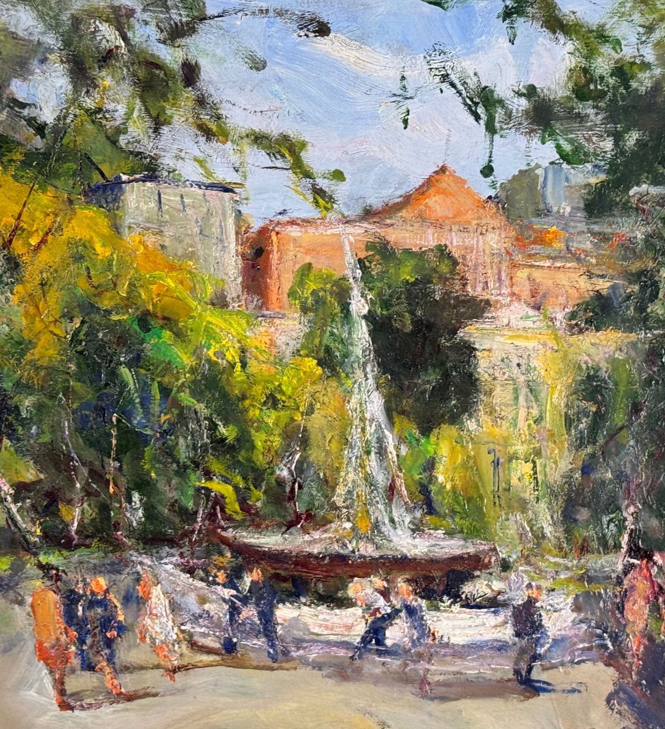 Dipinto olio su pannello, periodo XX secolo scuola Italiana, raffigurante La Villa Comunale. Dimensioni compreso cornice: 58,5x69 cm. Dimensioni interno cornice: 50x60 cm. Reca firma in basso a sinistra e autentica sul retro Filippone. Opera in buone condizioni.