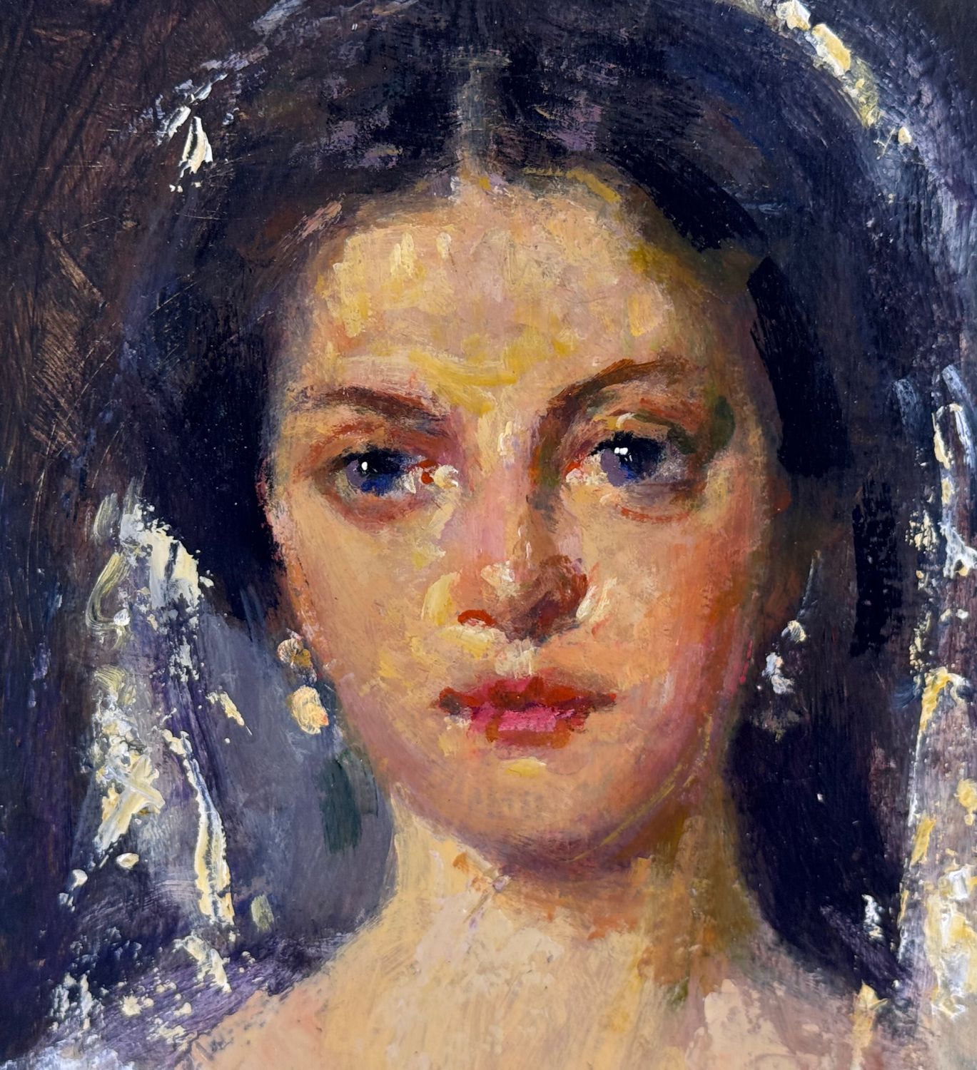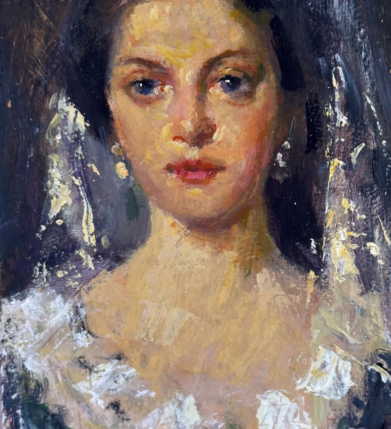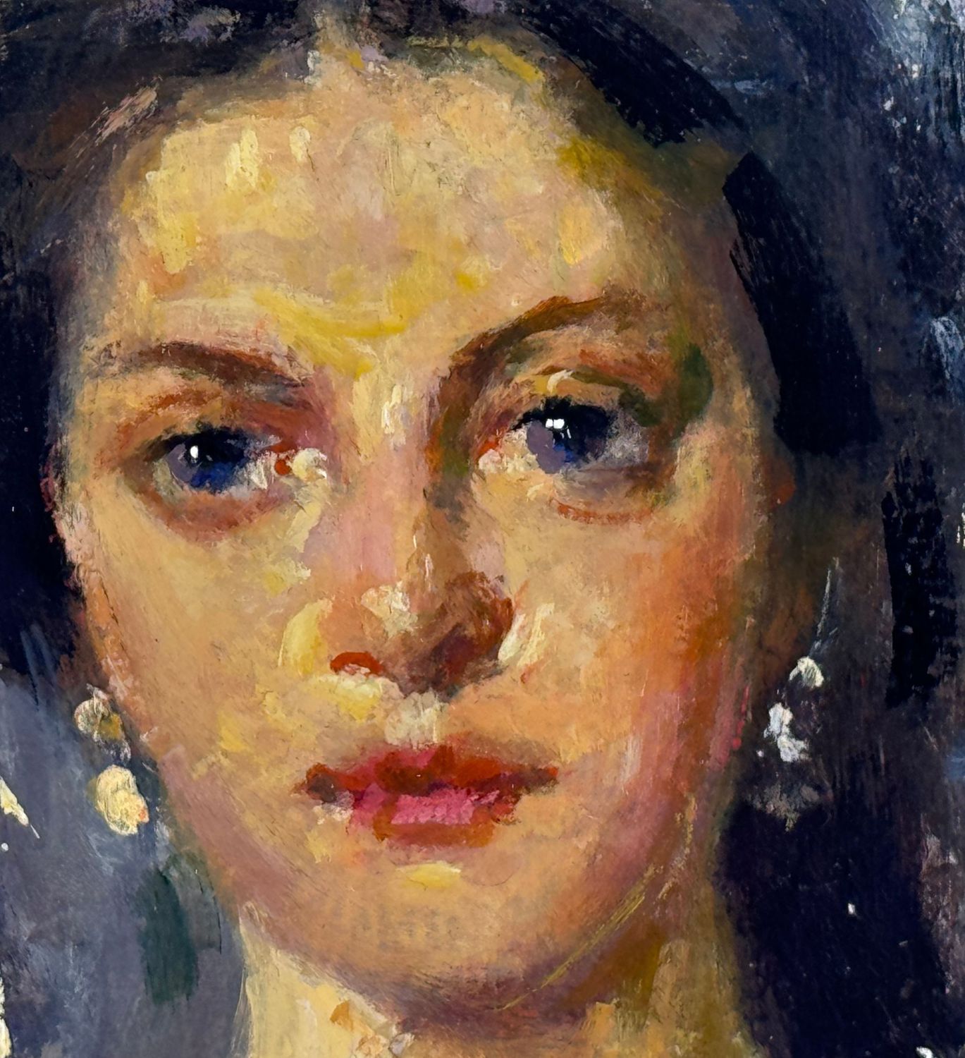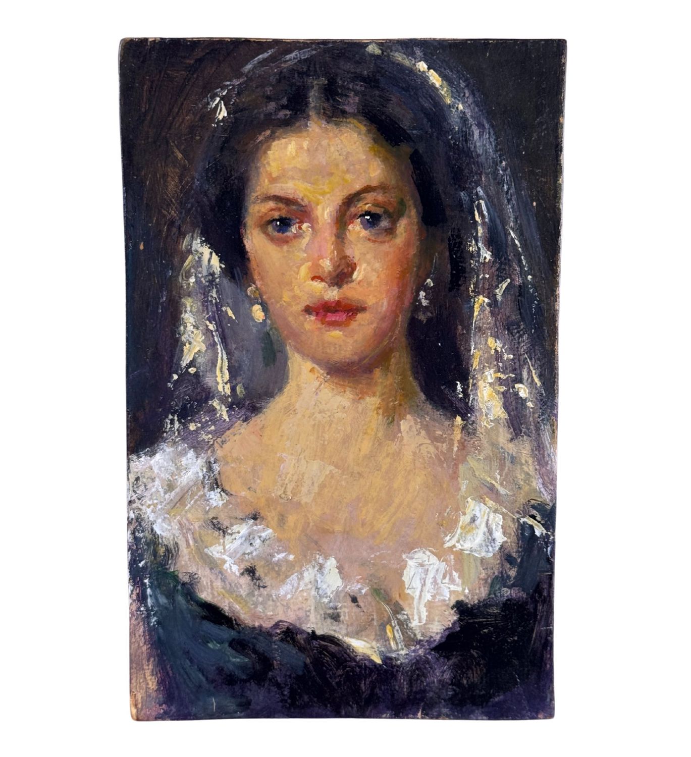 Dipinto olio su tavola, periodo XX secolo, scuola Italiana, raffigurante Ritratto di donna. Dimensioni: 15x24 cm. Artista anonimo. Opera in buone condizioni e di ottima qualità artistica.