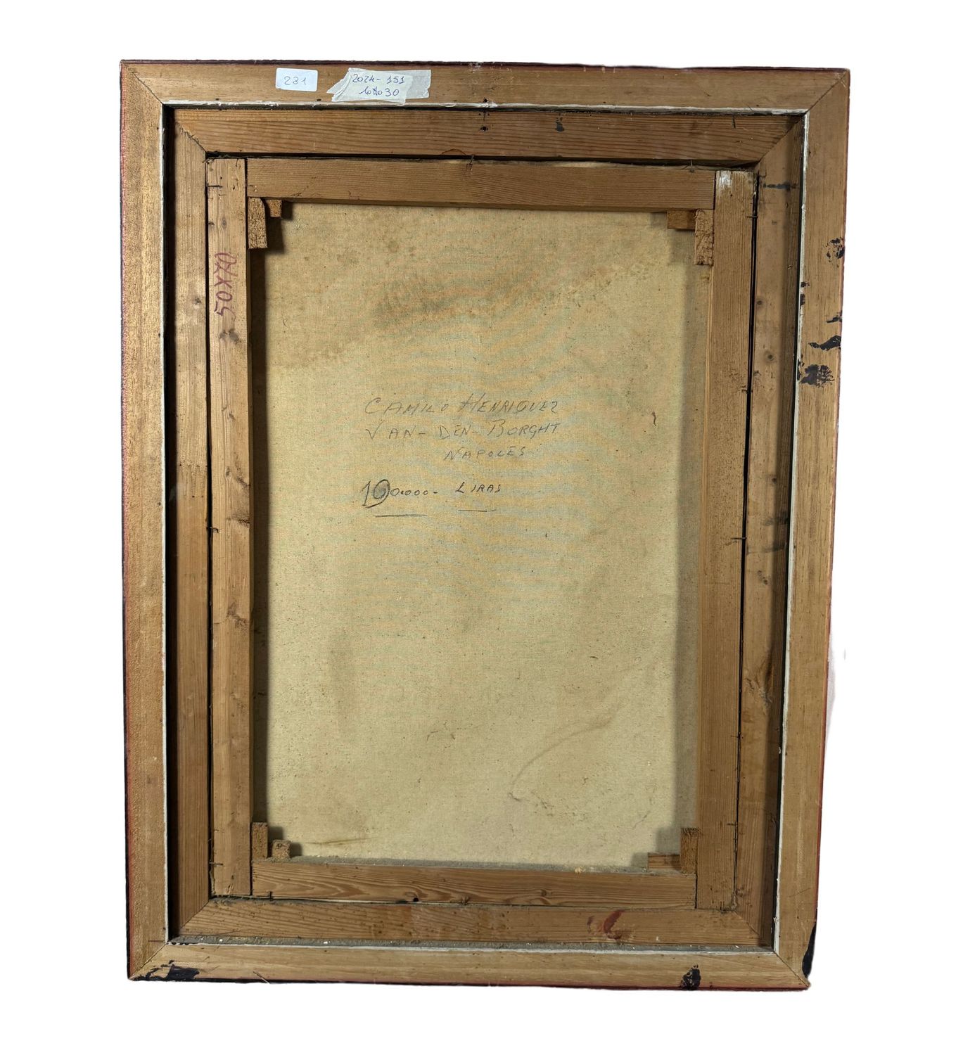 Dipinto olio su tela, periodo XX secolo scuola Italiana, raffigurante Ritratto di uomo con cappello. Dimensioni compreso cornice: 90x70 cm. Dimensioni interno cornice: 50x70 cm. Reca firma in basso a destra da Camilo Henriquez VAN DEN BORGHT (1935-2005). Opera in buone condizioni.