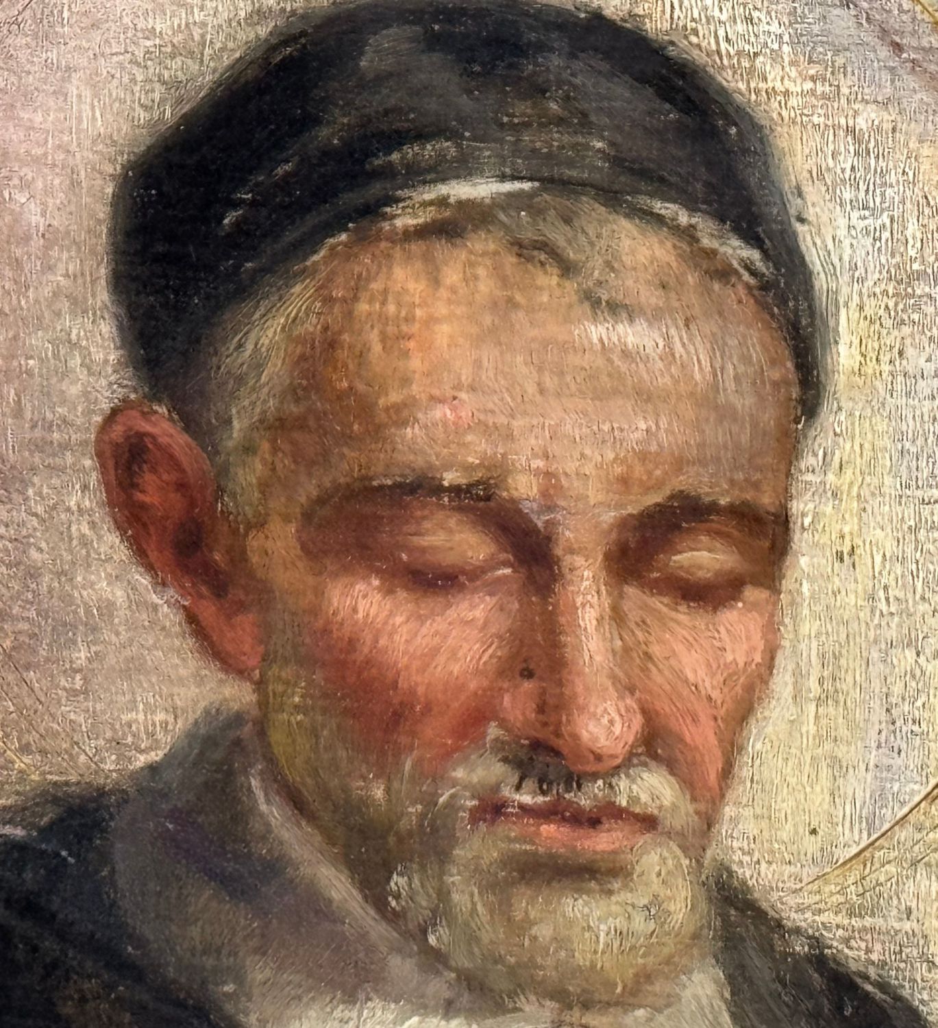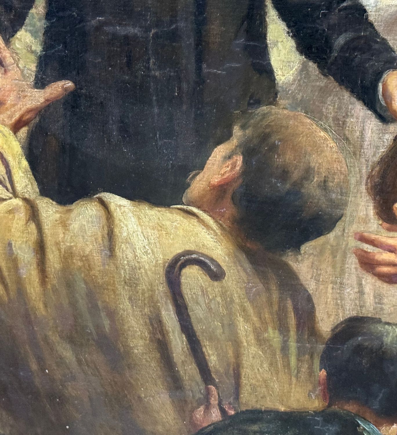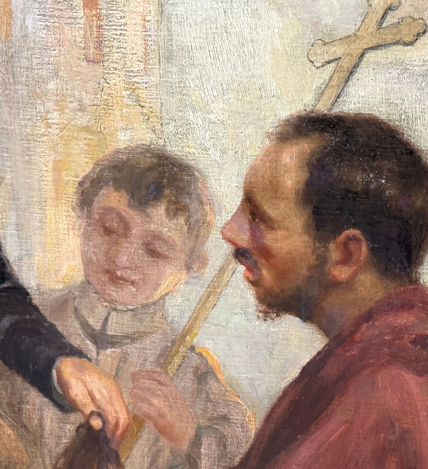Dipinto olio su tela applicata su tavola, periodo inizio XX secolo scuola Italiana, raffigurante La predicazione di San Francesco di Sales, il santo dei poveri e degli afflitti. Dimensioni compreso cornice: 189x120 cm. Dimensioni interno cornice: 170x100 cm. Reca firma e data in basso a sinistra da Girosi 1919. Opera in discrete condizioni con sparsi punti di restauro.