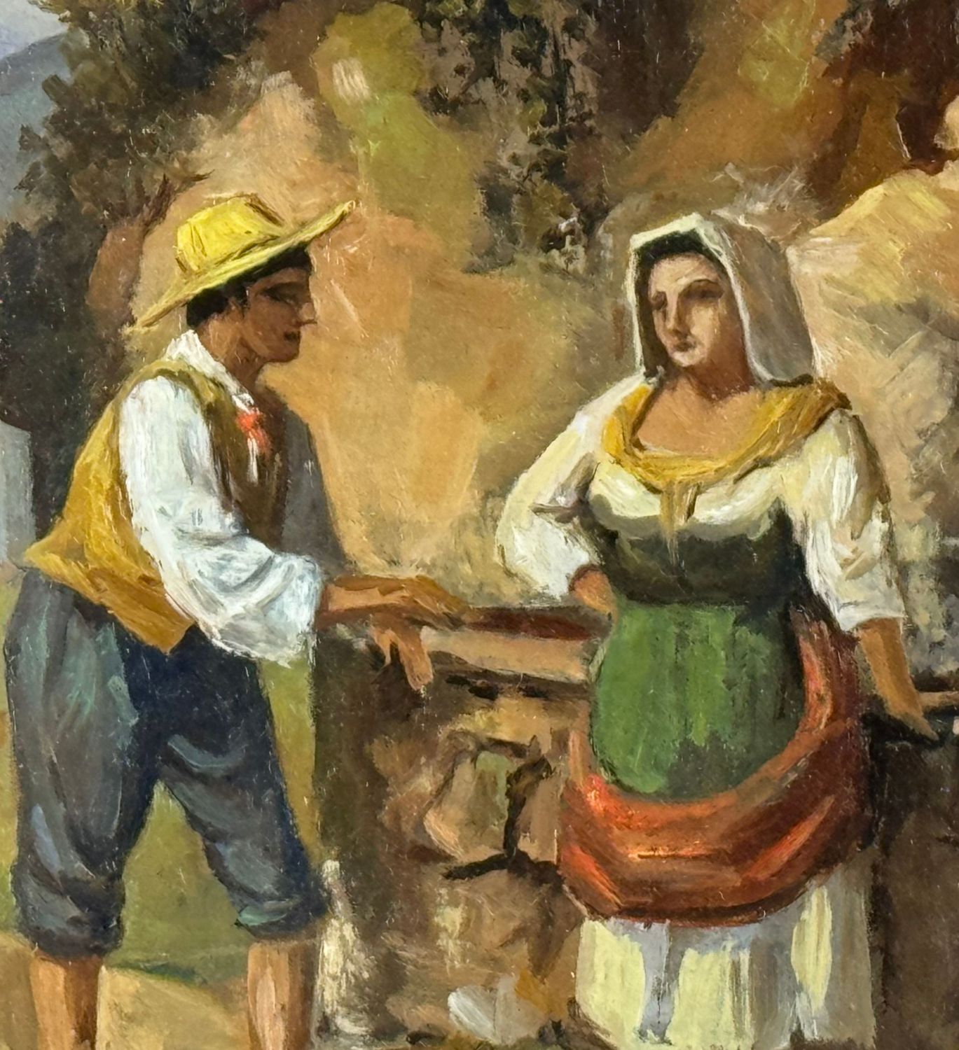 Dipinto olio su tela, periodo XIX/XX secolo scuola Italiana, raffigurante Personaggi alla fontana. Dimensioni compreso cornice: 67x45 cm. Dimensioni interno cornice: 46x24 cm. Da artista anonimo. Opera in buone condizioni.