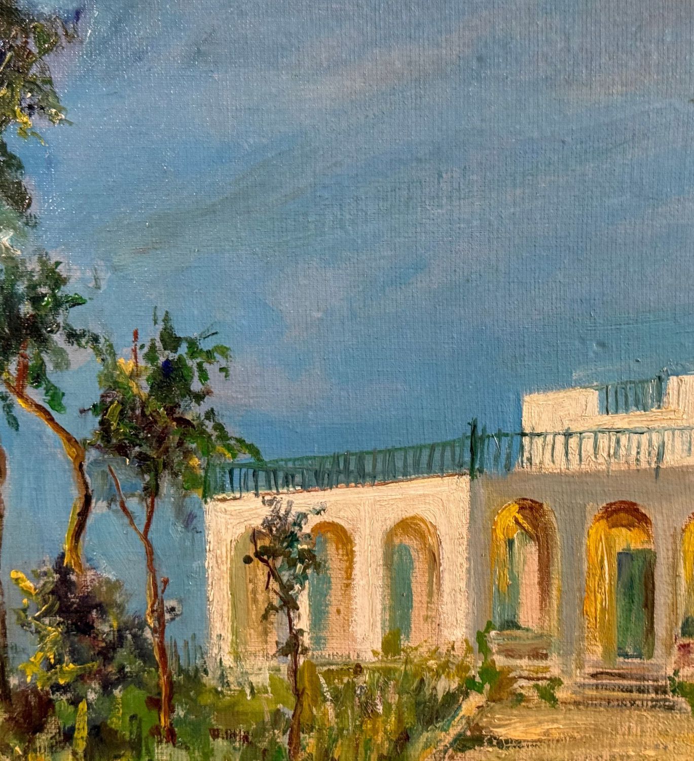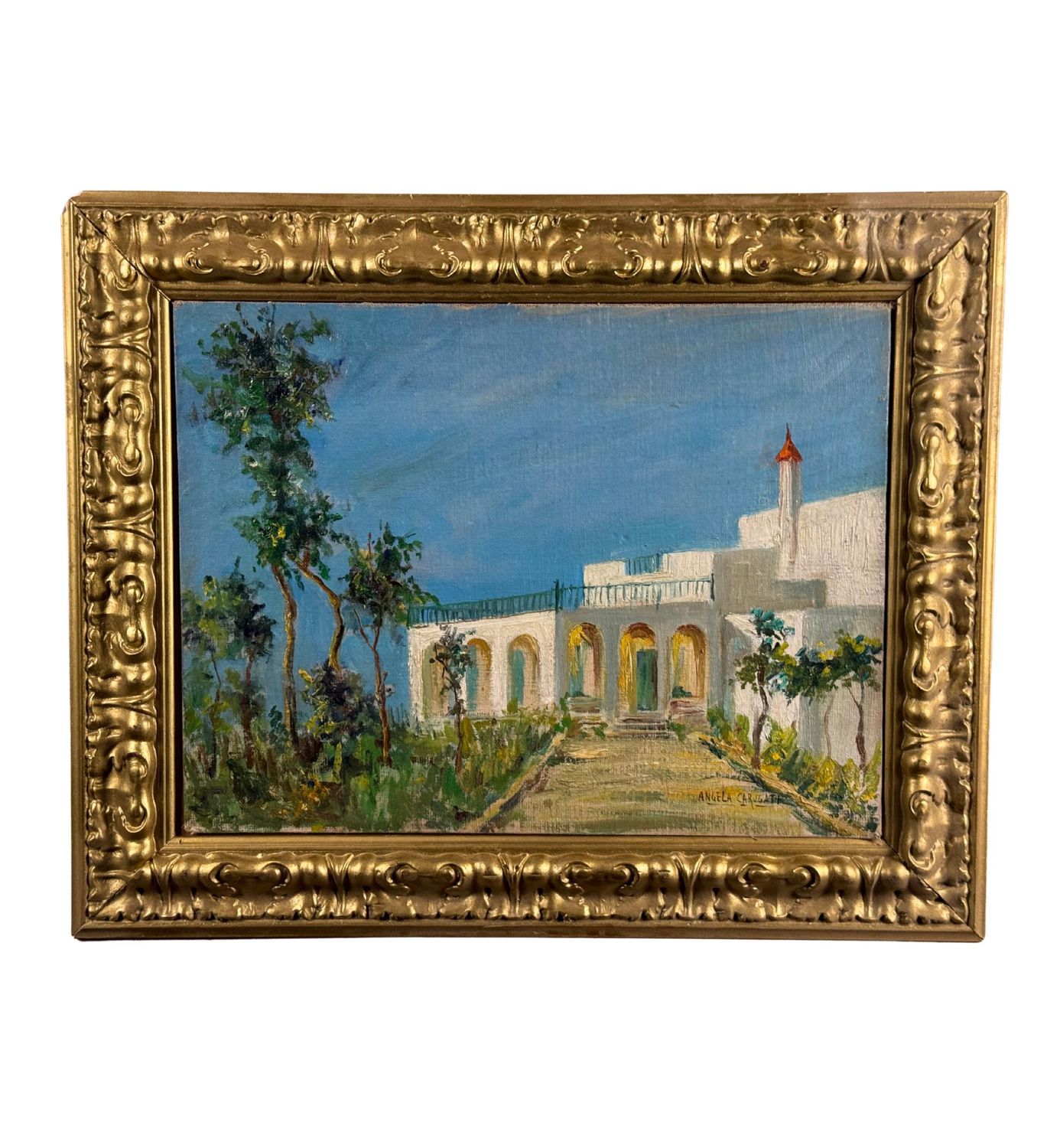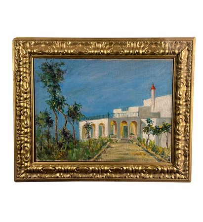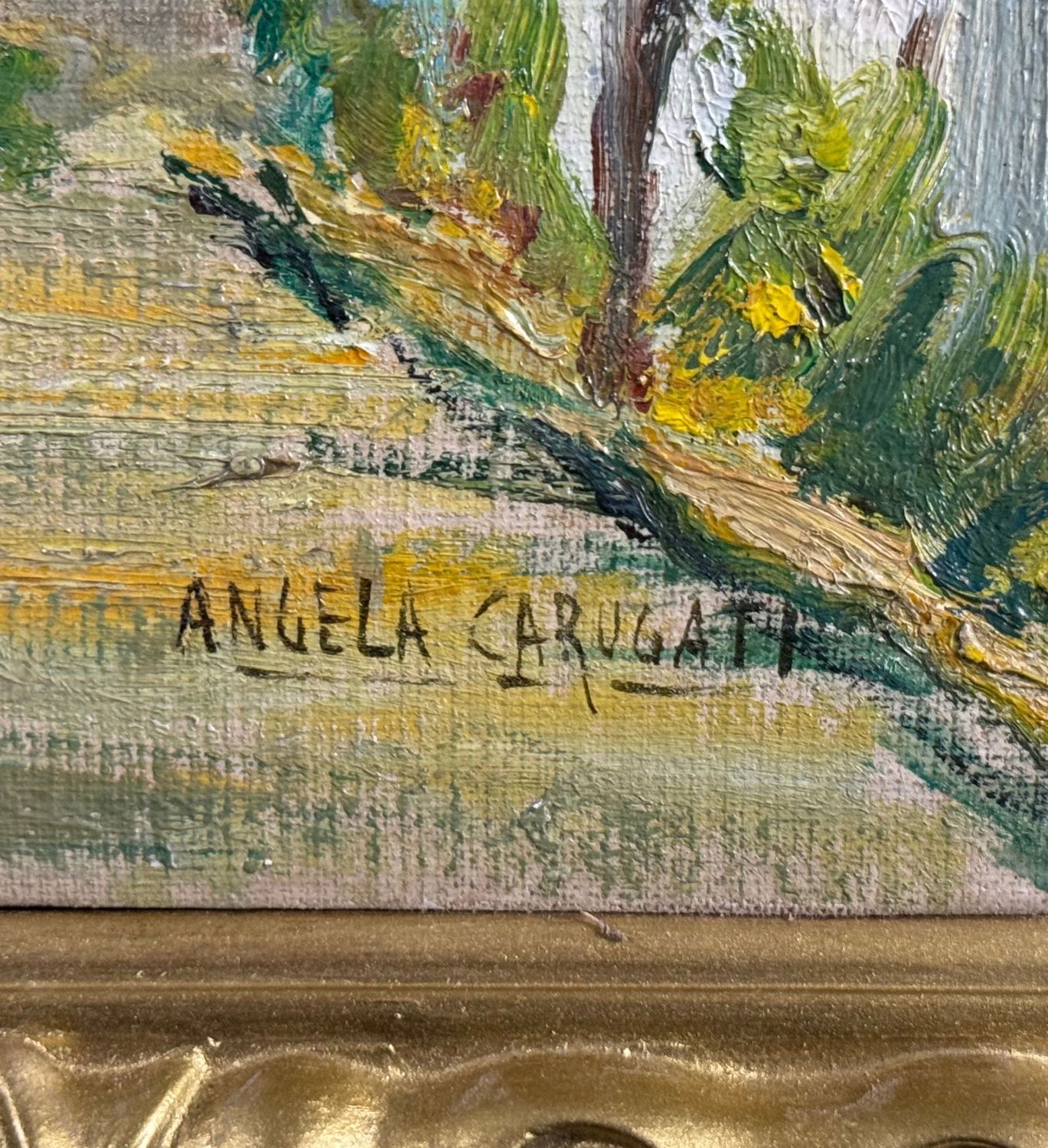 Dipinto olio su pannello telato, periodo XX secolo scuola italiana, raffigurante Casetta in costiera. Dimensioni compreso cornice: 52x42 cm. Dimensioni interno cornice: 40x30 cm. Reca firma in basso a destra da Angela Carugati (1881 - 1977). Opera in buone condizioni.