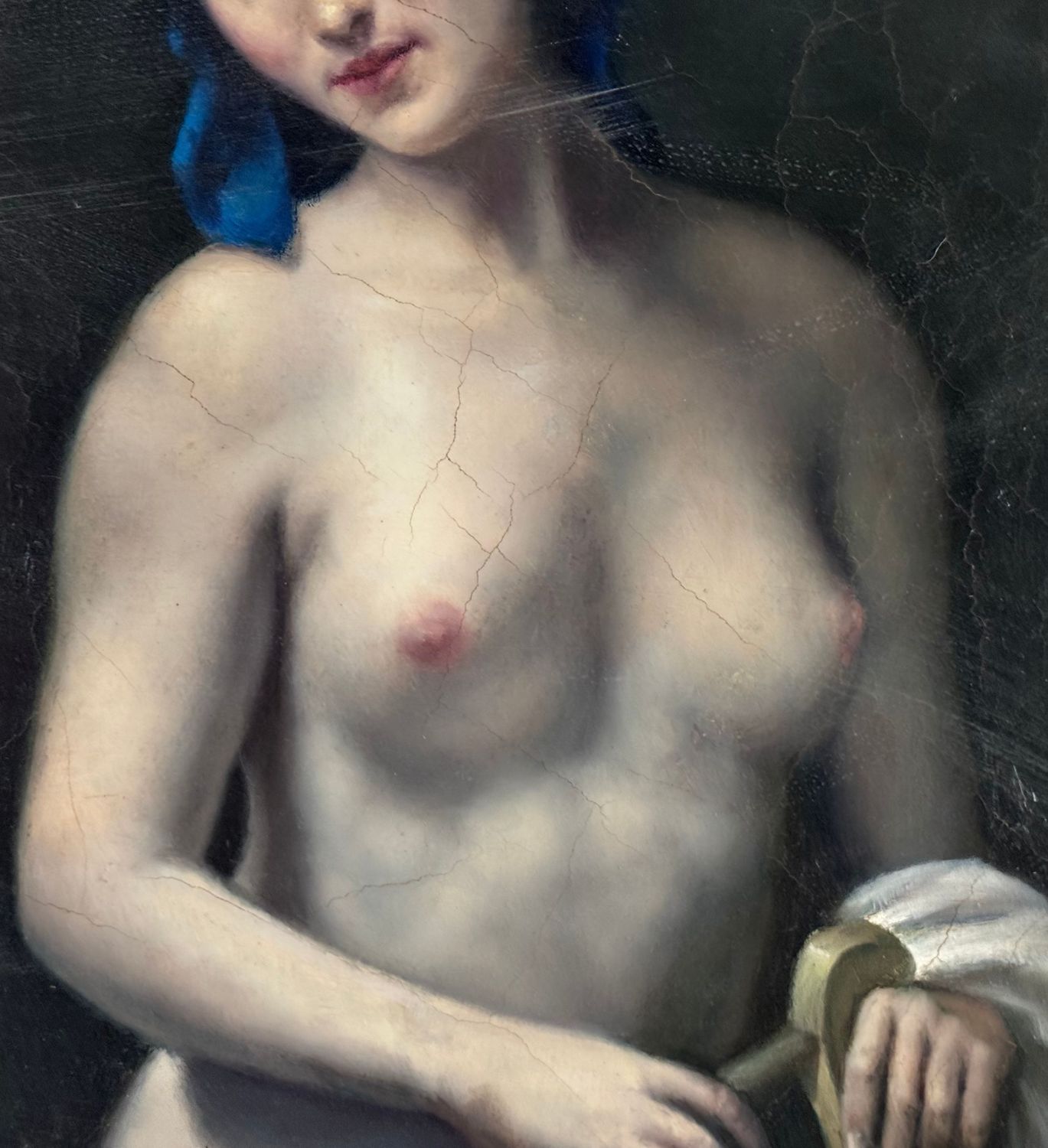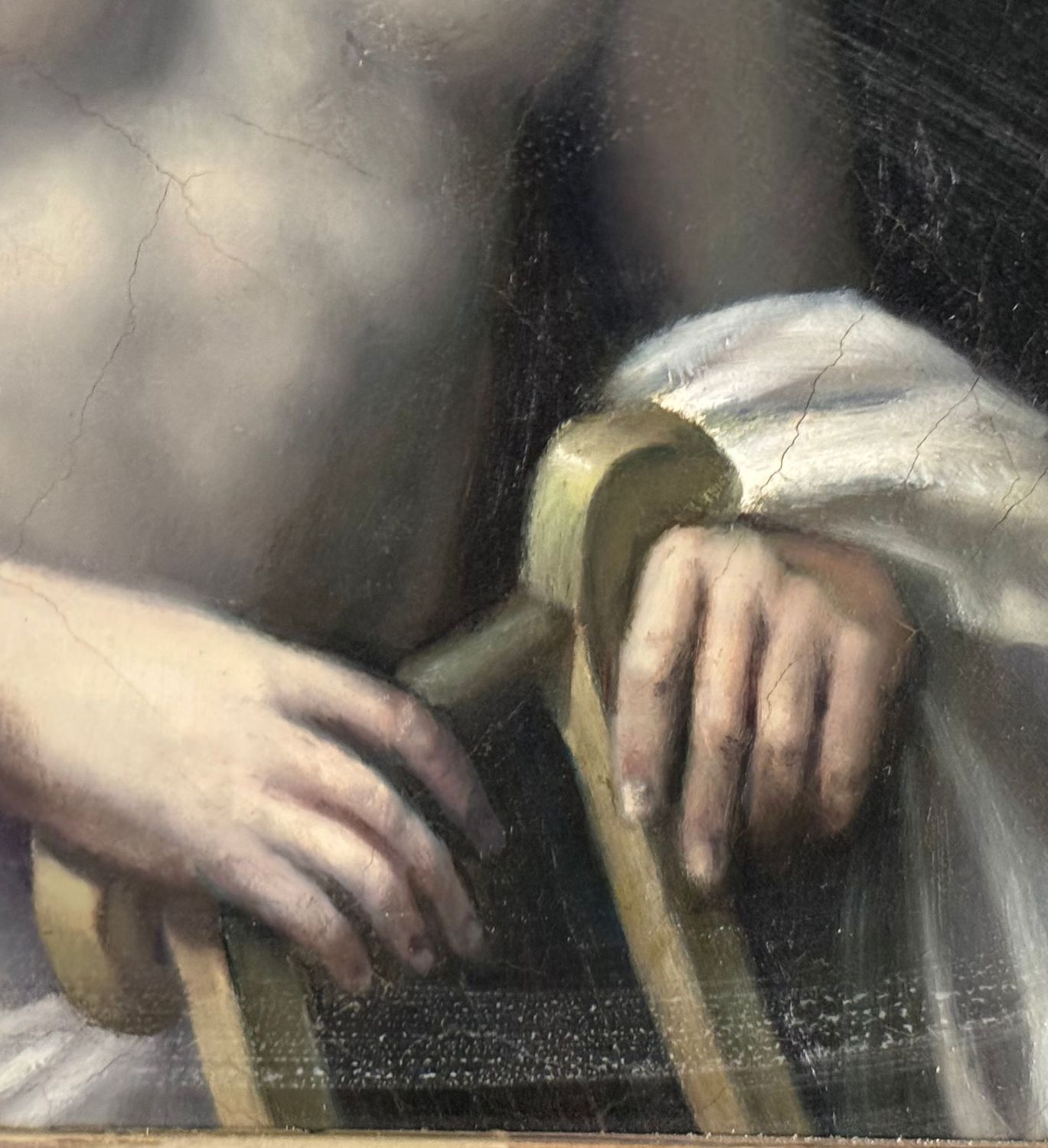 Dipinto olio su tela, periodo opera accademica primi anni del XX secolo scuola Italiana, raffigurante Allegoria della musica. Dimensioni compreso cornice: 64x74 cm. Dimensioni interno cornice: 45x55 cm. Artista anonimo. Opera in buone condizioni con lievi segni di vissuto come da foto allegate.