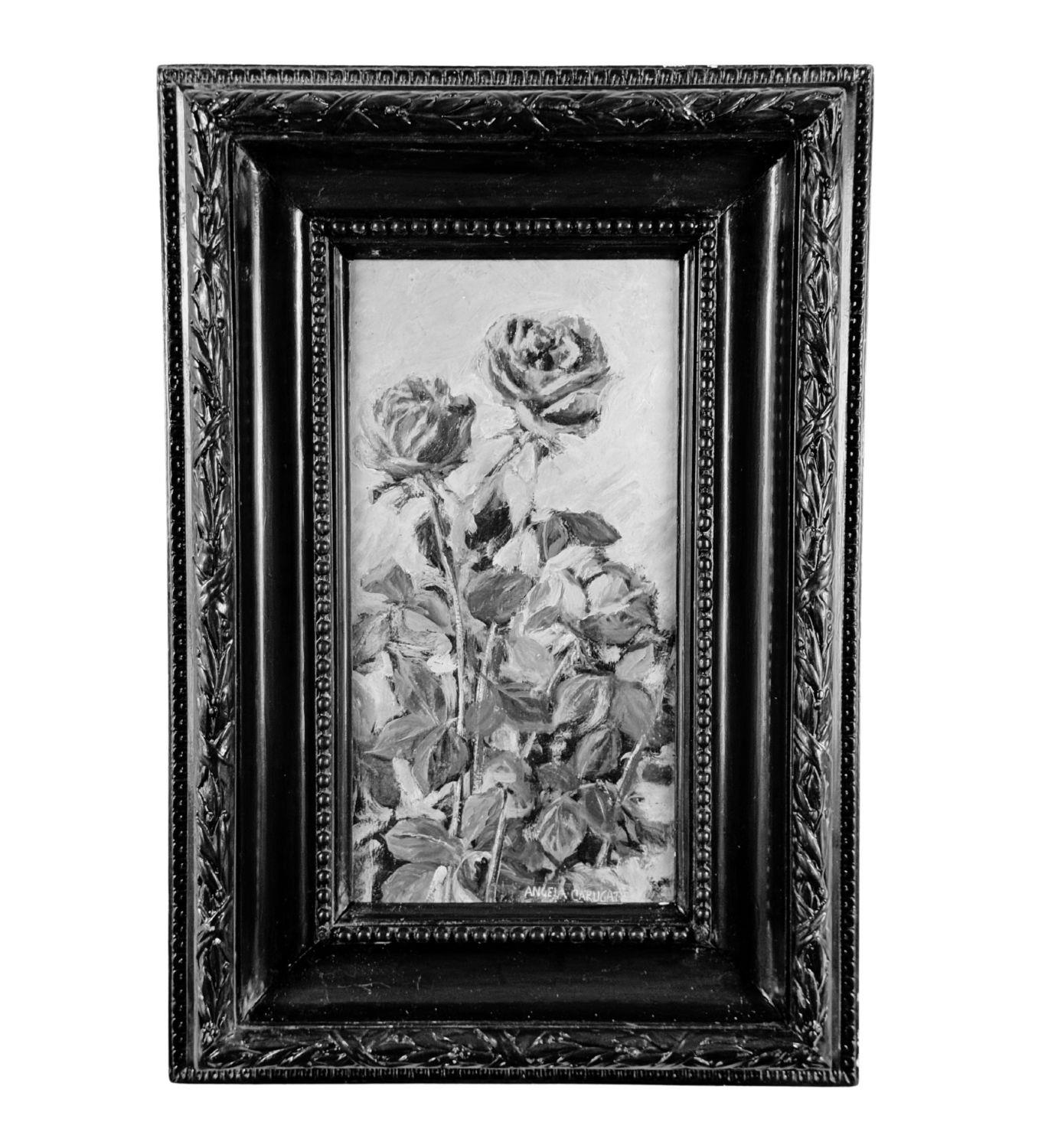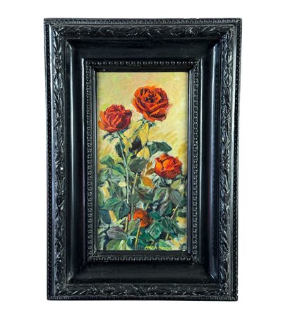 Dipinto olio su pannello, periodo XX secolo scuola Italiana, raffigurante Rose. Dimensioni compreso cornice: 64x44 cm. Dimensioni interno cornice: 22x42 cm. Reca firma in basso a destra da Angela Carugati (1881 - 1977). Opera in buone condizioni.