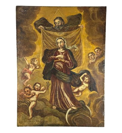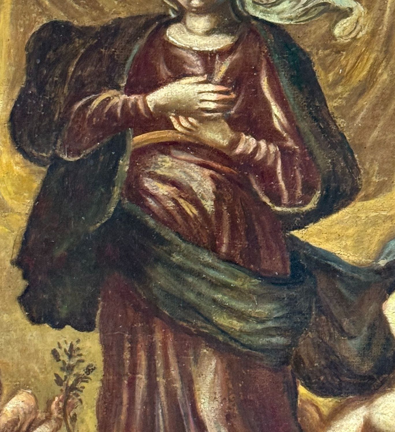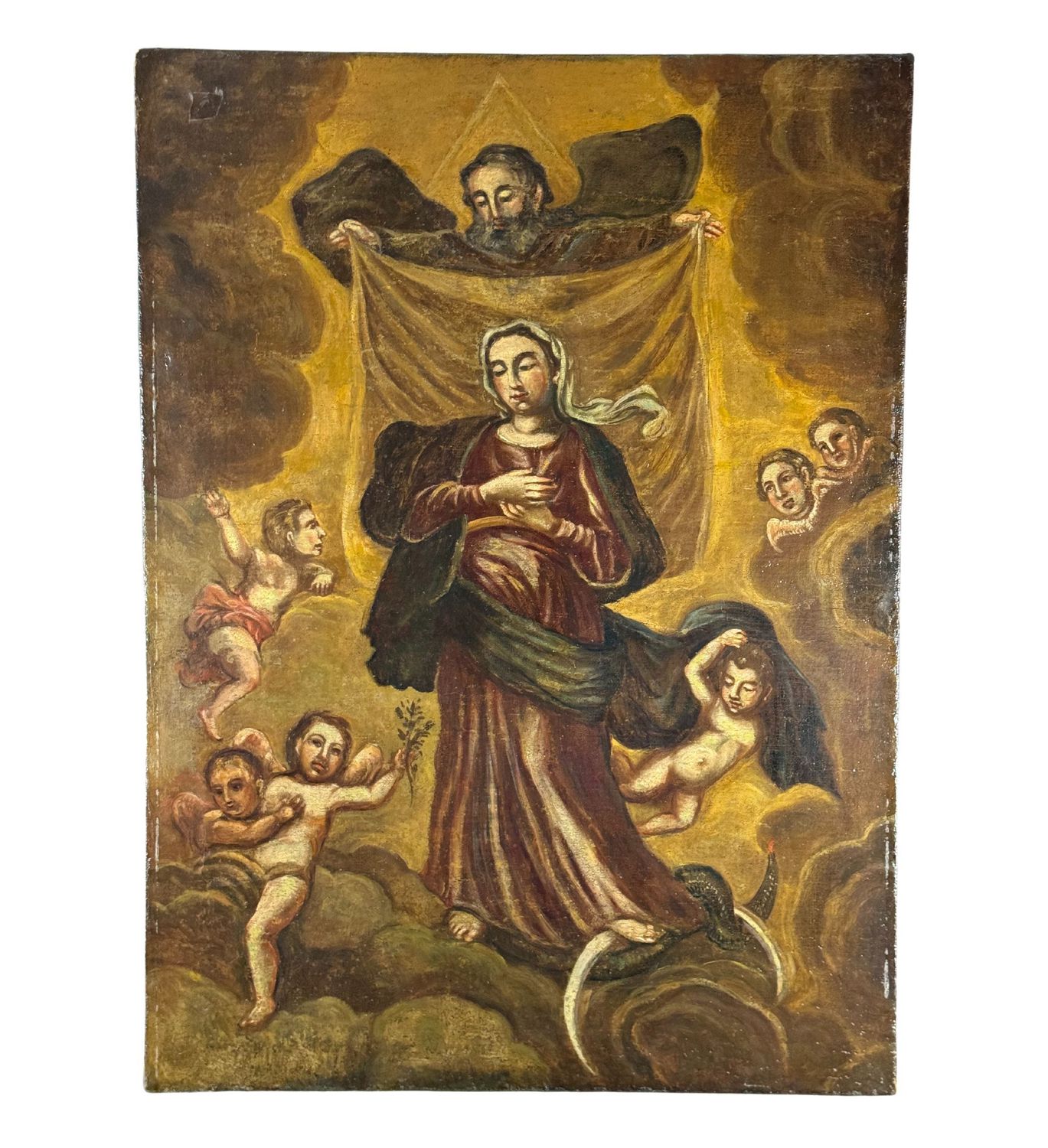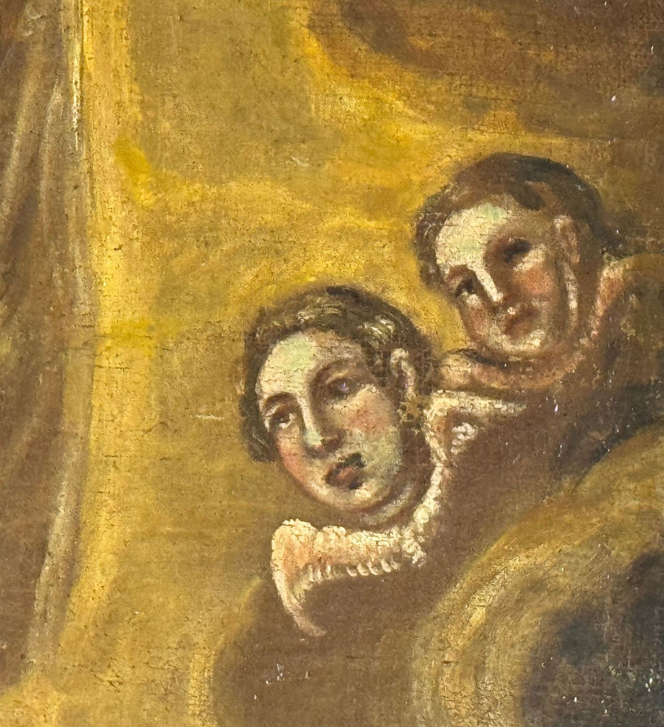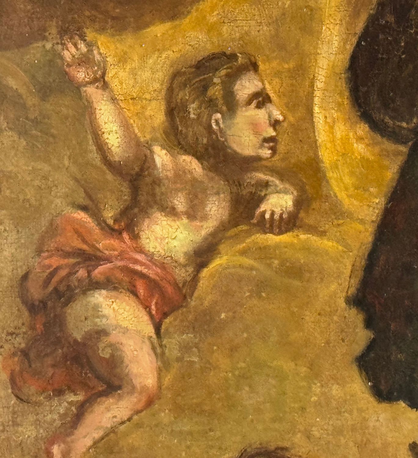 Dipinto olio su tela, periodo XVIII secolo scuola Italiana Meridionale, raffigurante Scena Biblica. Dimensioni: 102x75 cm. Da artista anonimo. Opera in buone condizioni. Da segnalare vecchio rintelo e vari punti di restauro.
