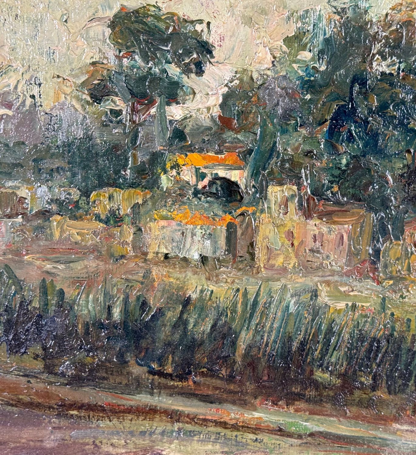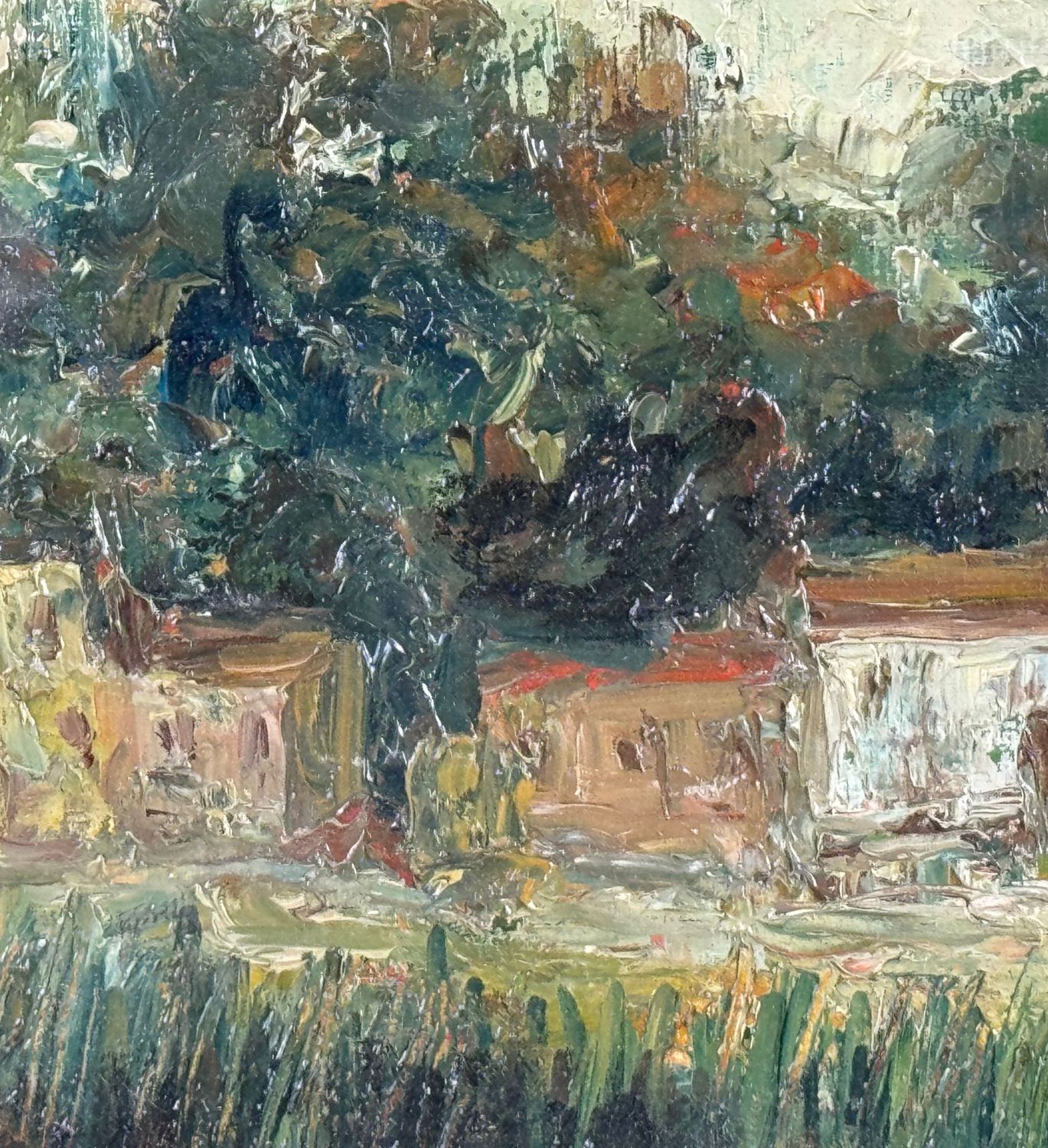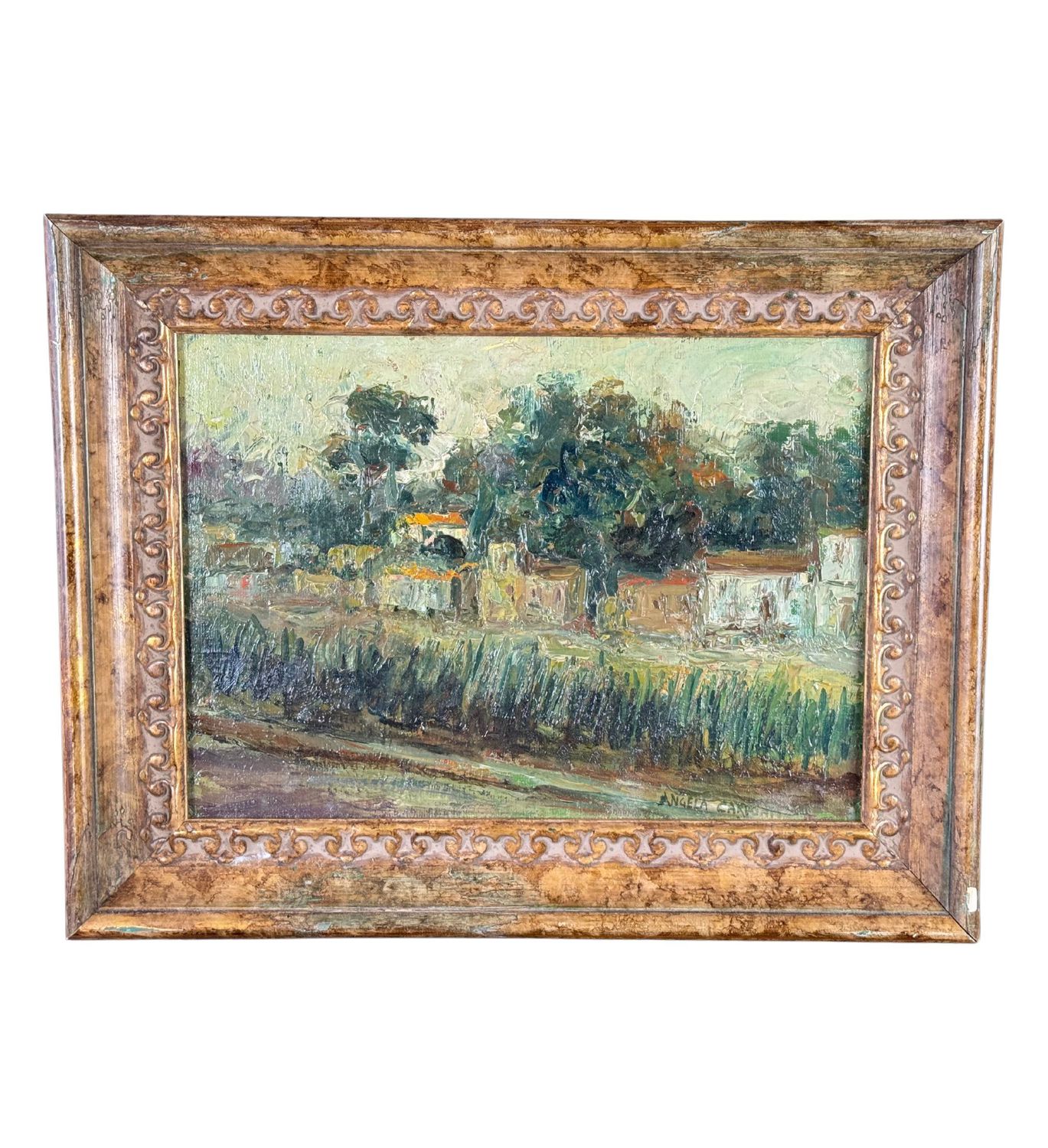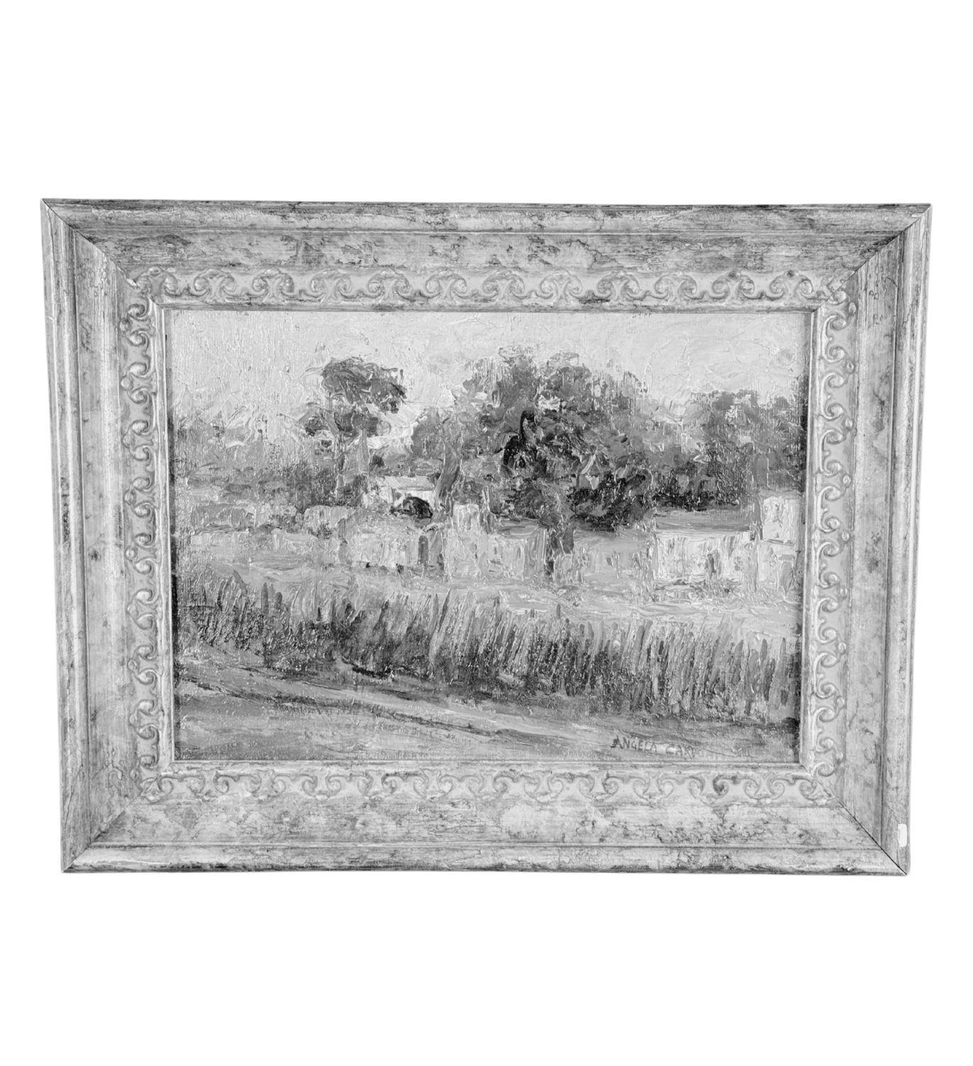 Dipinto olio su cartoncino, periodo XX secolo scuola Italiana, raffigurante Paesaggio. Dimensioni compreso cornice: 45x35 cm. Dimensioni interno cornice: 35x25 cm. Reca firma in basso a destra da Angela Carugati. Opera in buone condizioni.