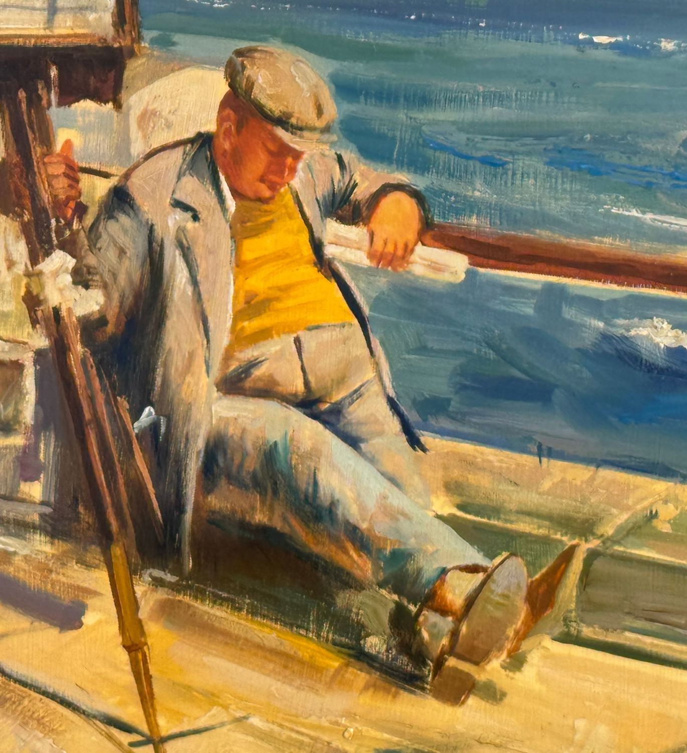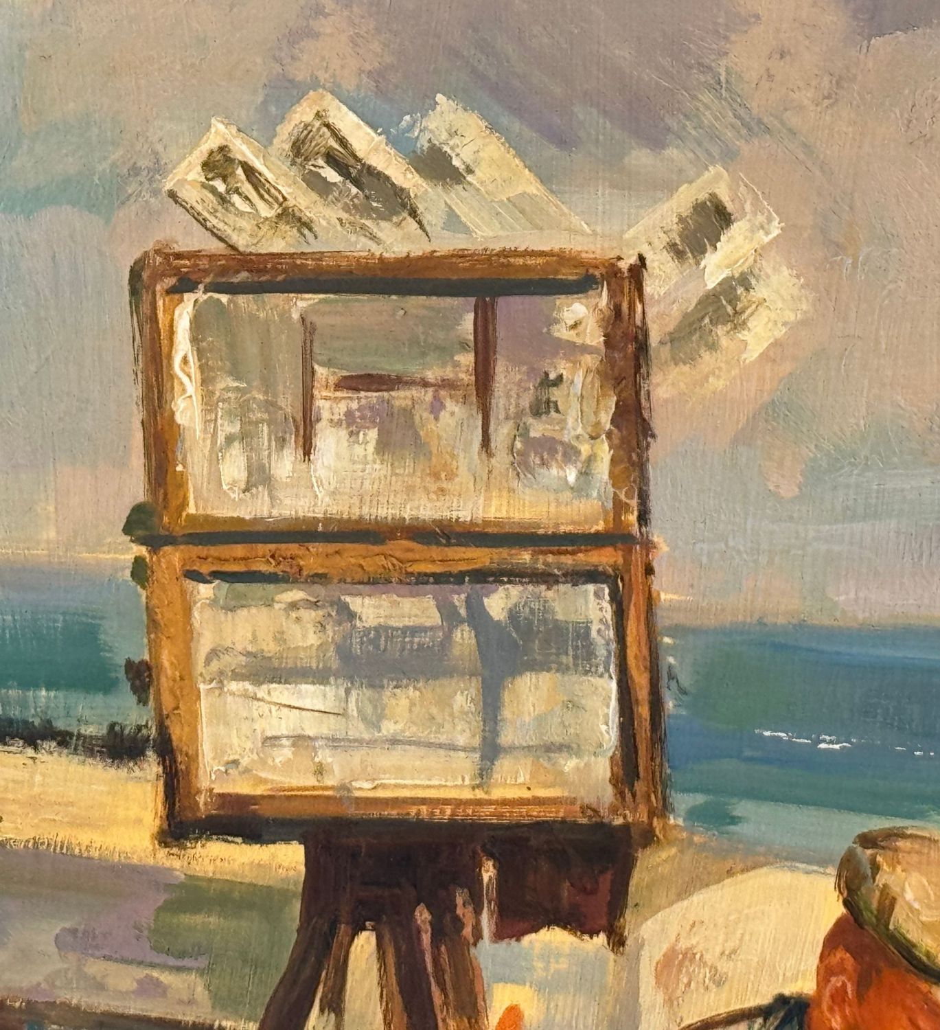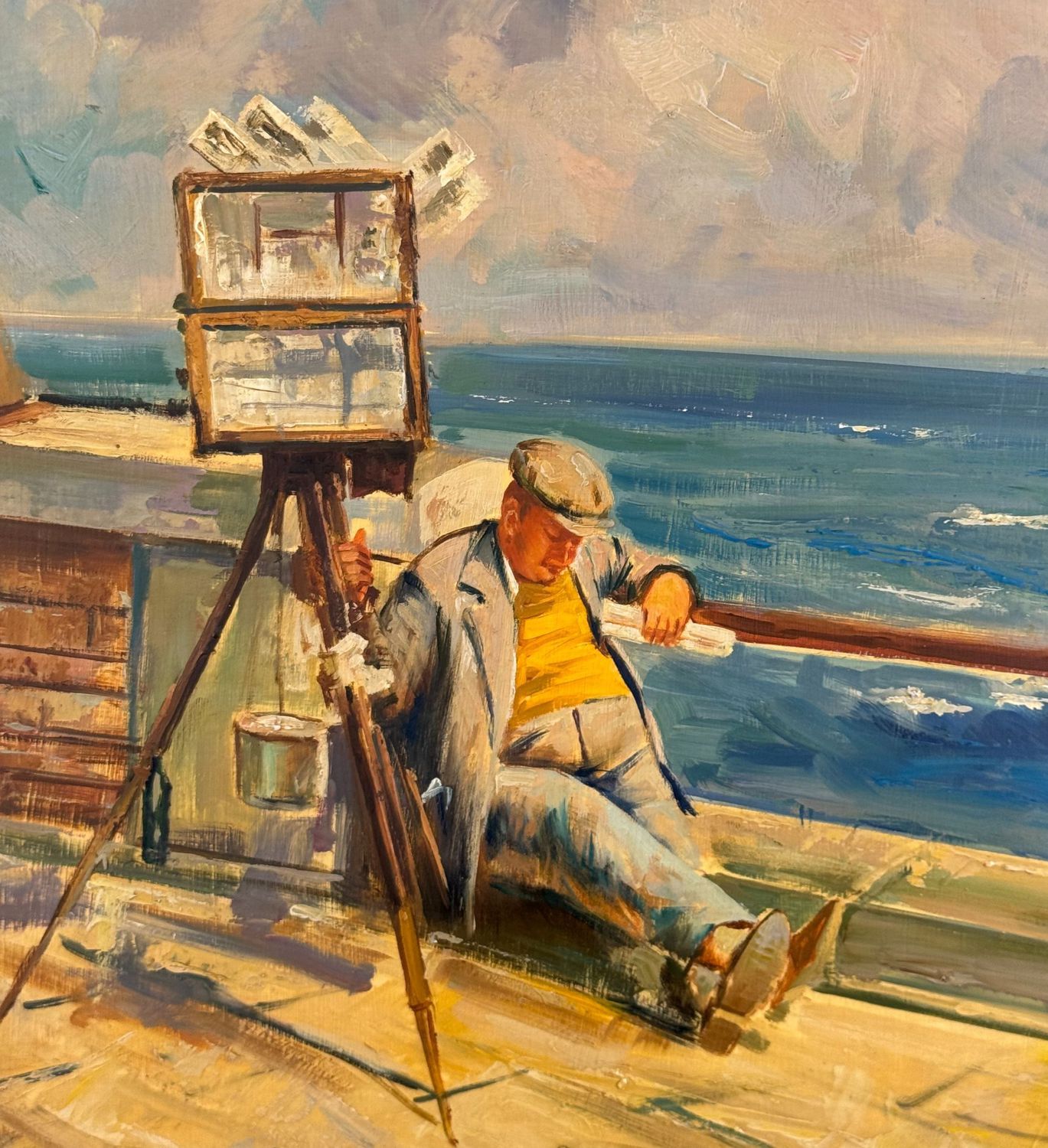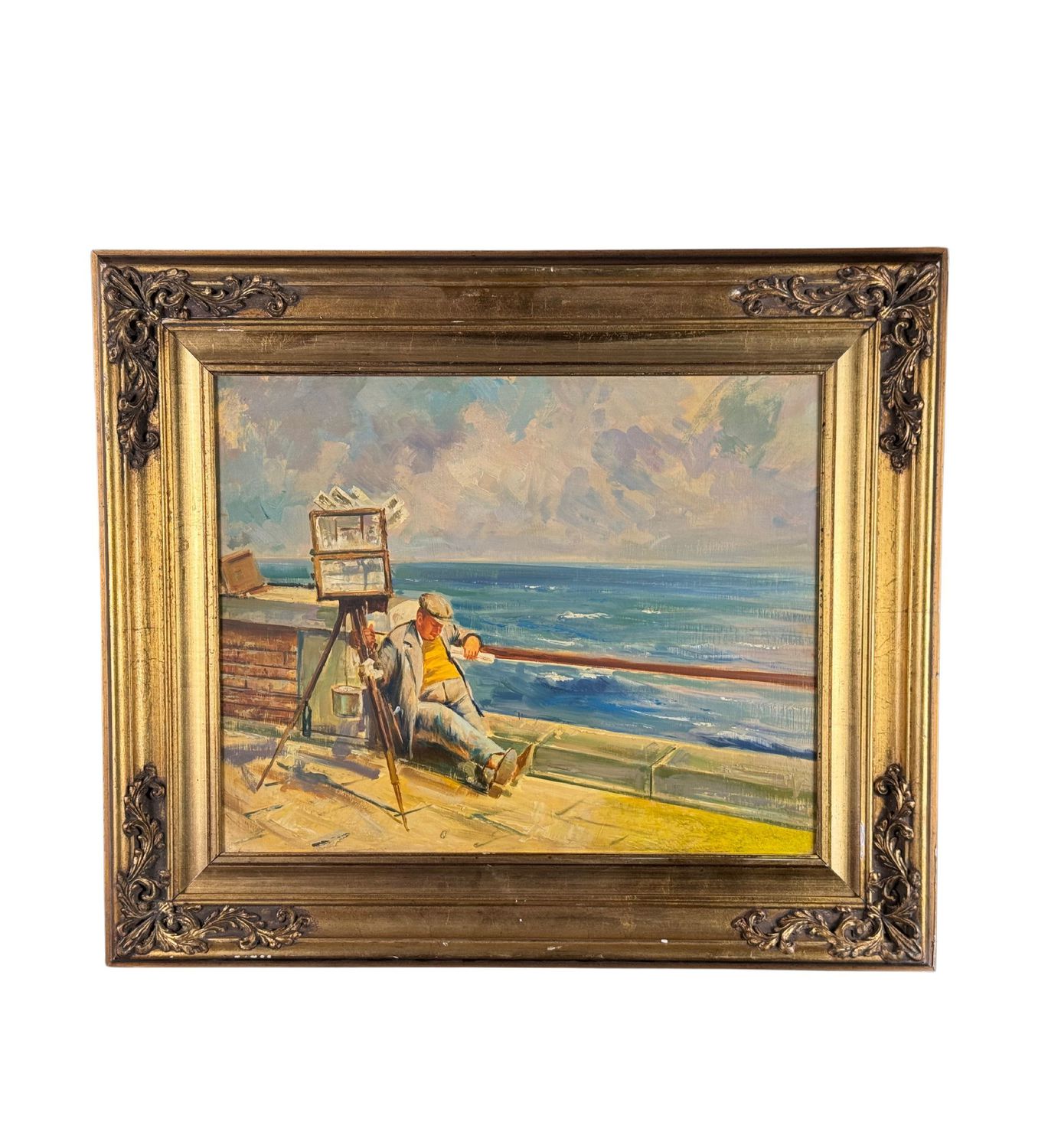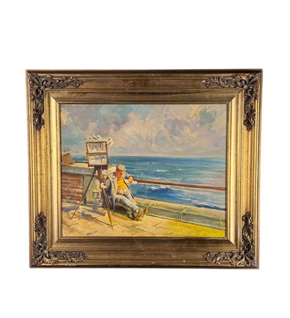 Dipinto olio su pannello, periodo XX, raffigurante "Il fotografo a Mergellina". Omaggio a Giovanni Panza. Dimensioni compreso cornice: 69x59 cm. Dimensioni interno cornice: 50x40 cm. Da artista anonimo. Opera in buone condizioni.