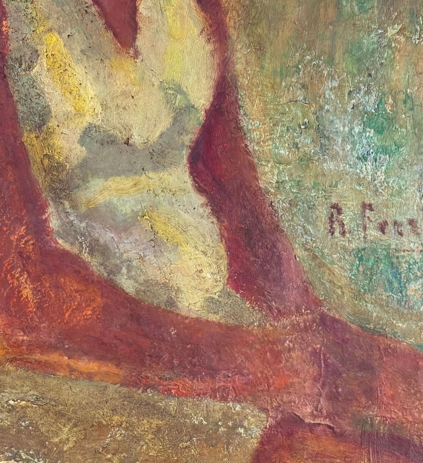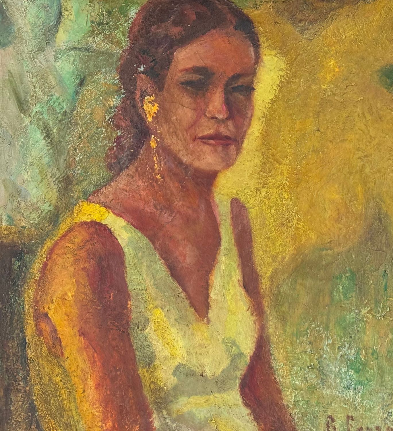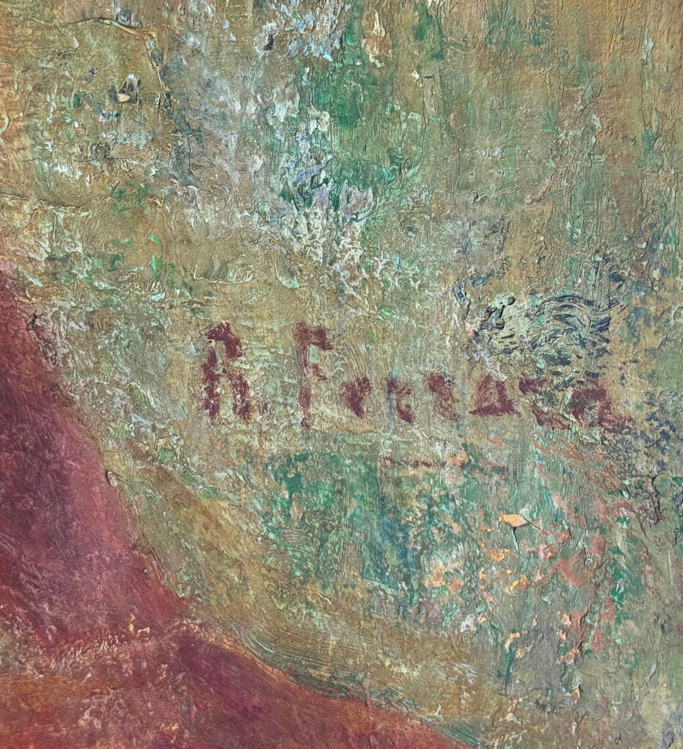 Dipinto olio su tela, periodo XX secolo, raffigurante Ritratto di donna. Dimensioni compreso cornice: 72x93 cm. Dimensioni interno cornice: 61x82 cm. Reca firma in basso a destra R. Ferrara. Opera in buone condizioni.