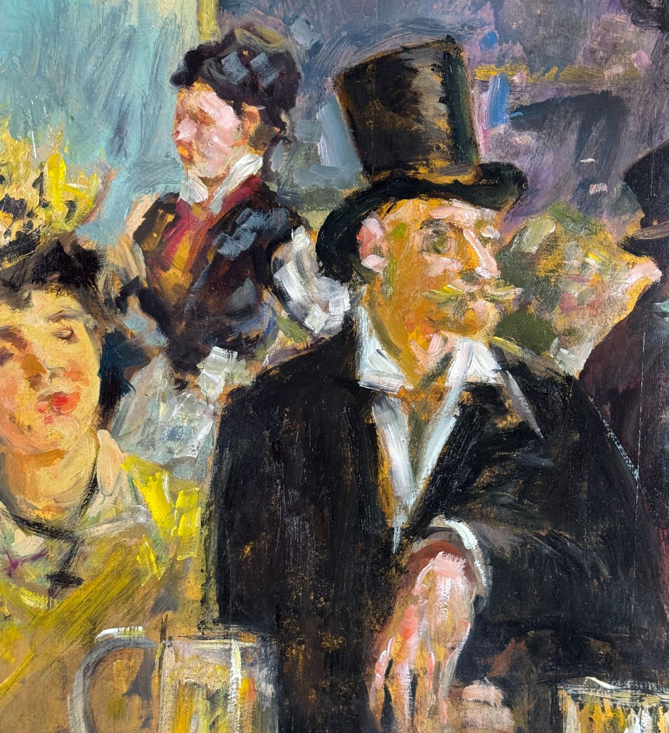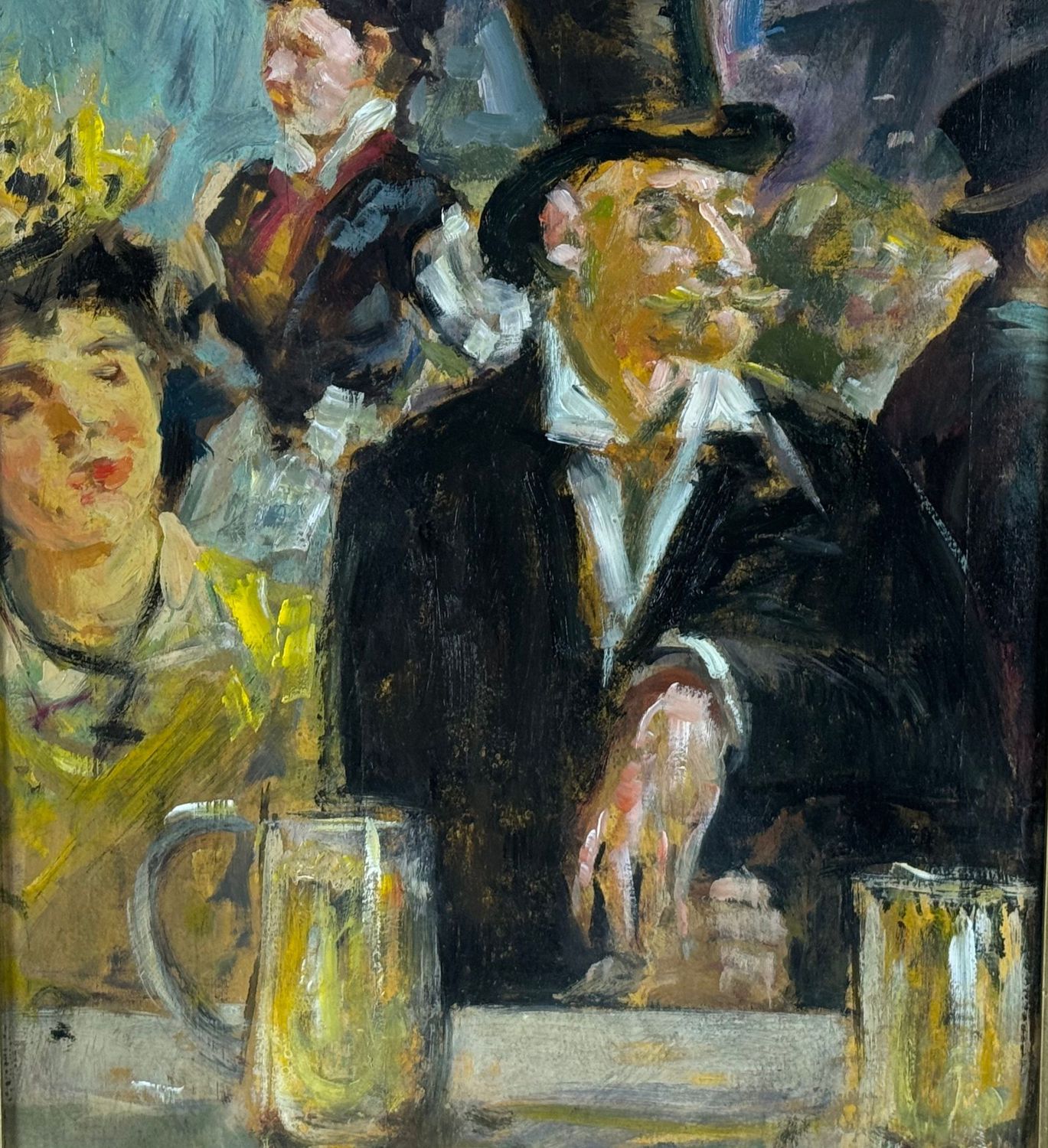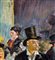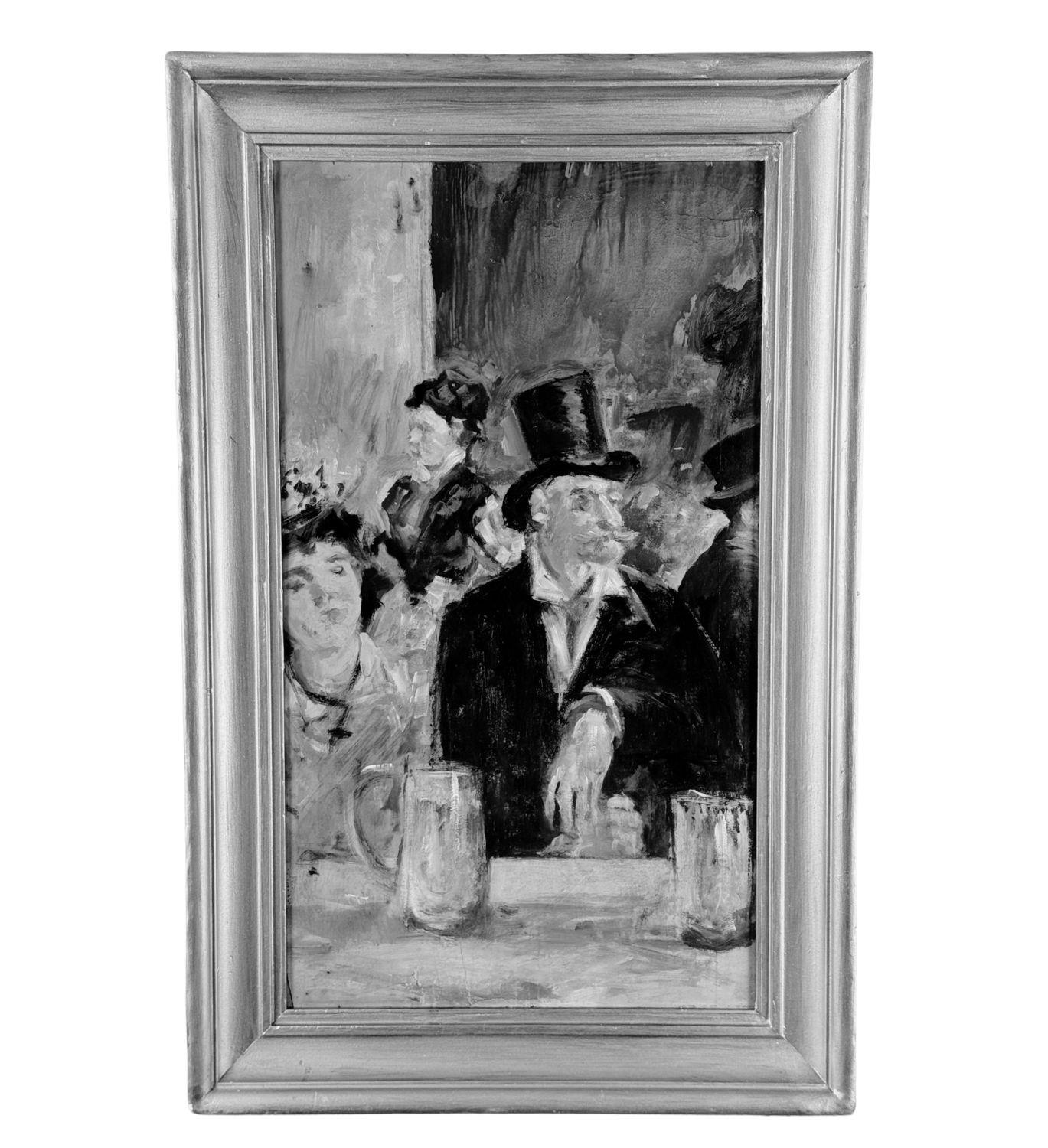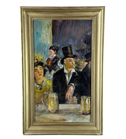 Dipinto olio su tavola, periodo XX secolo scuola Italiana, raffigurante Personaggi al café. Omaggio a Édouard Manet. Dimensioni compreso cornice: 46x72 cm. Dimensioni interno cornice: 35x60 cm. Da artista anonimo. Opera in buone condizioni con lievi segni di vissuto come da foto allegate.