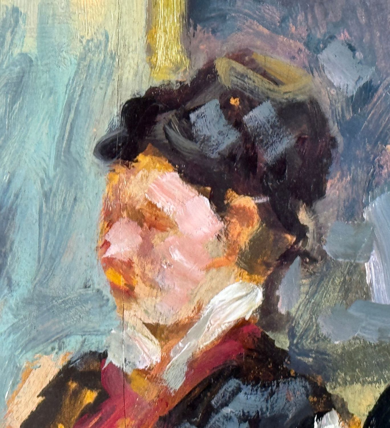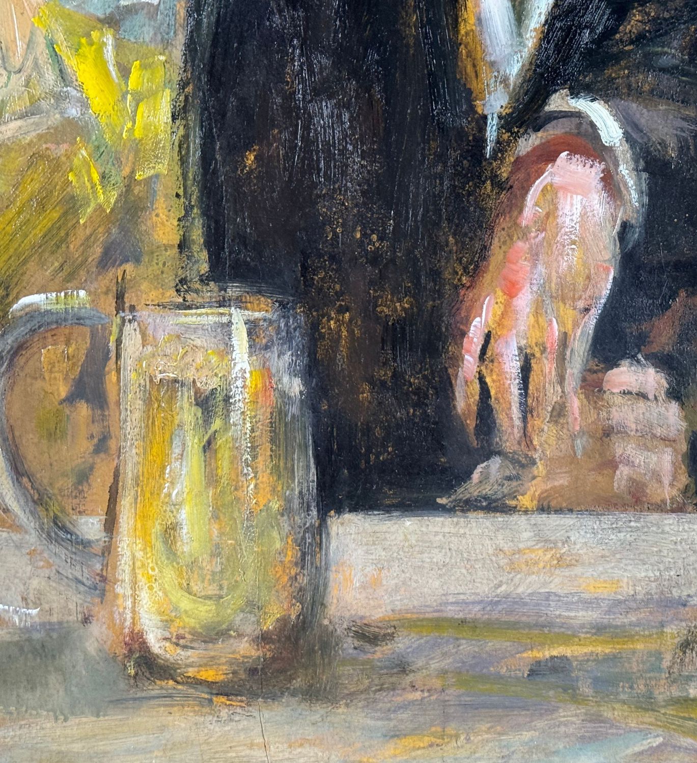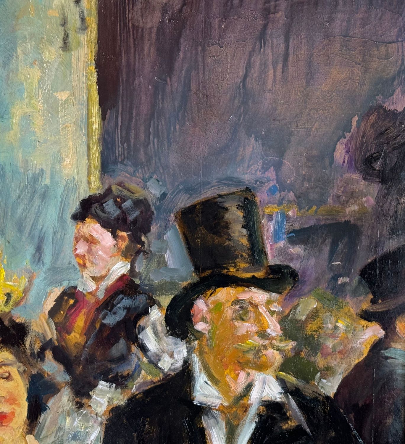 Dipinto olio su tavola, periodo XX secolo scuola Italiana, raffigurante Personaggi al café. Omaggio a Édouard Manet. Dimensioni compreso cornice: 46x72 cm. Dimensioni interno cornice: 35x60 cm. Da artista anonimo. Opera in buone condizioni con lievi segni di vissuto come da foto allegate.
