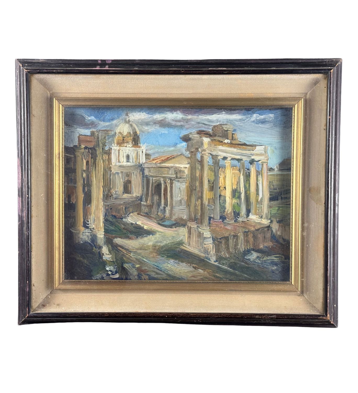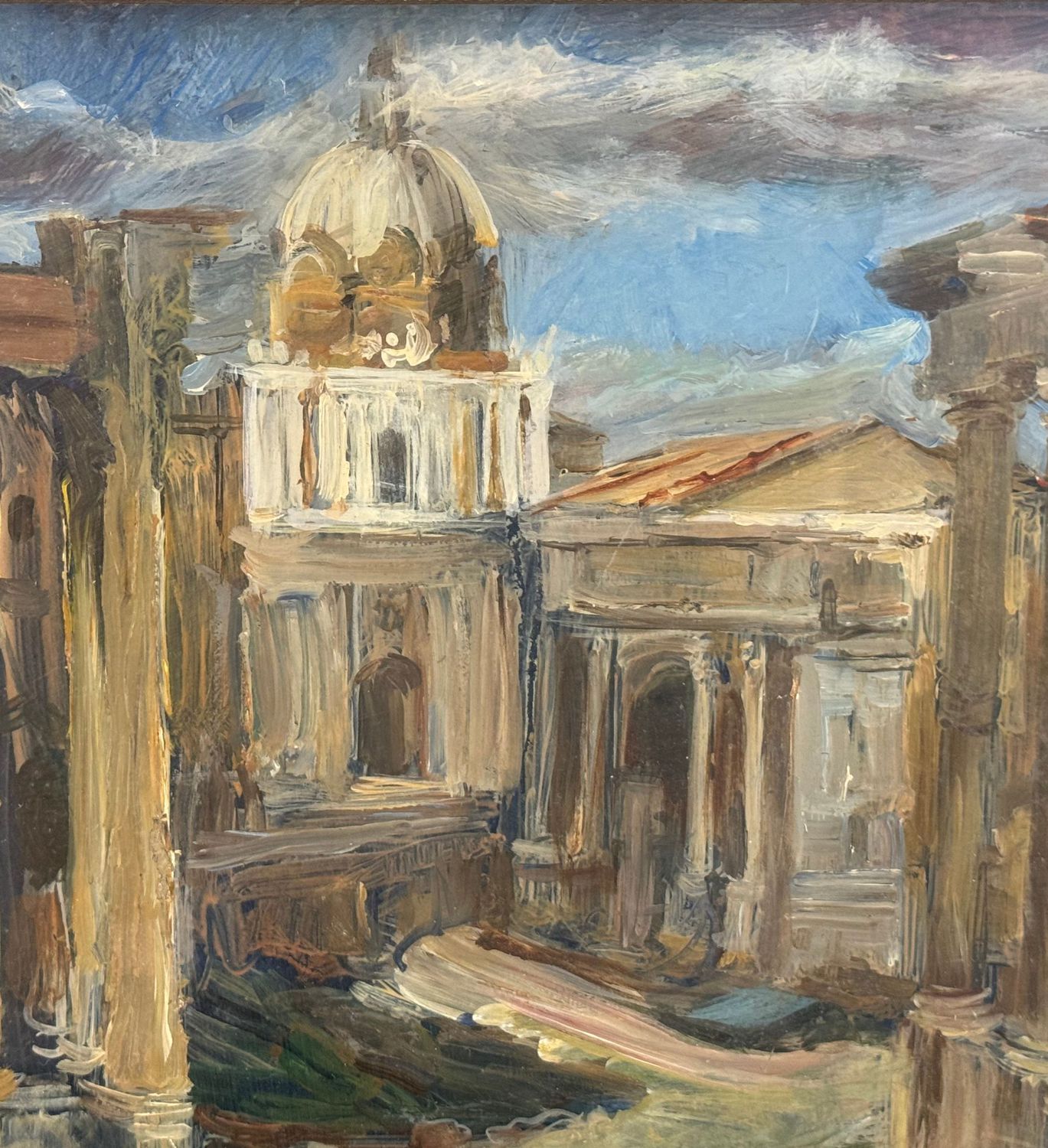 Dipinto olio su cartoncino, periodo XX secolo scuola Italiana, raffigurante Capriccio architettonico. Dimensioni compreso cornice: 55x45 cm. Dimensioni interno cornice: 40x30 cm. Da artista anonimo. Opera in buone condizioni.