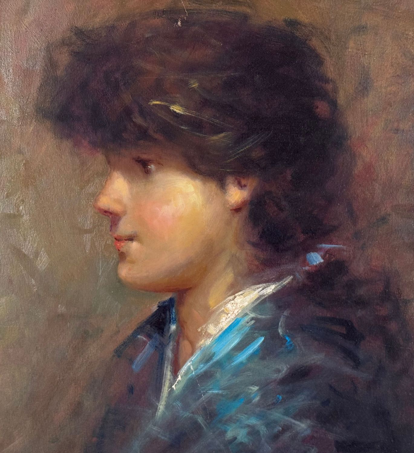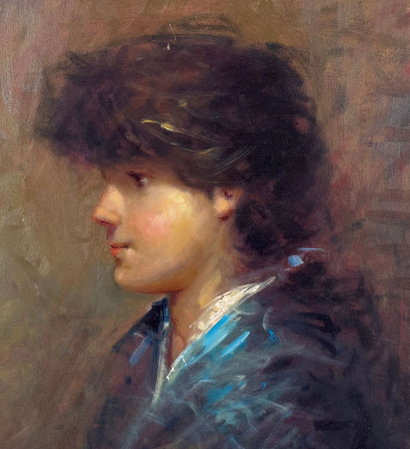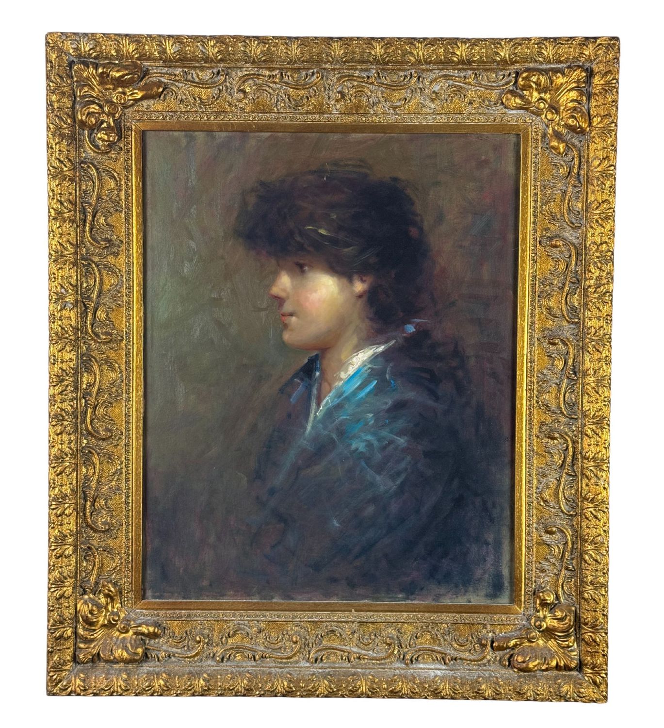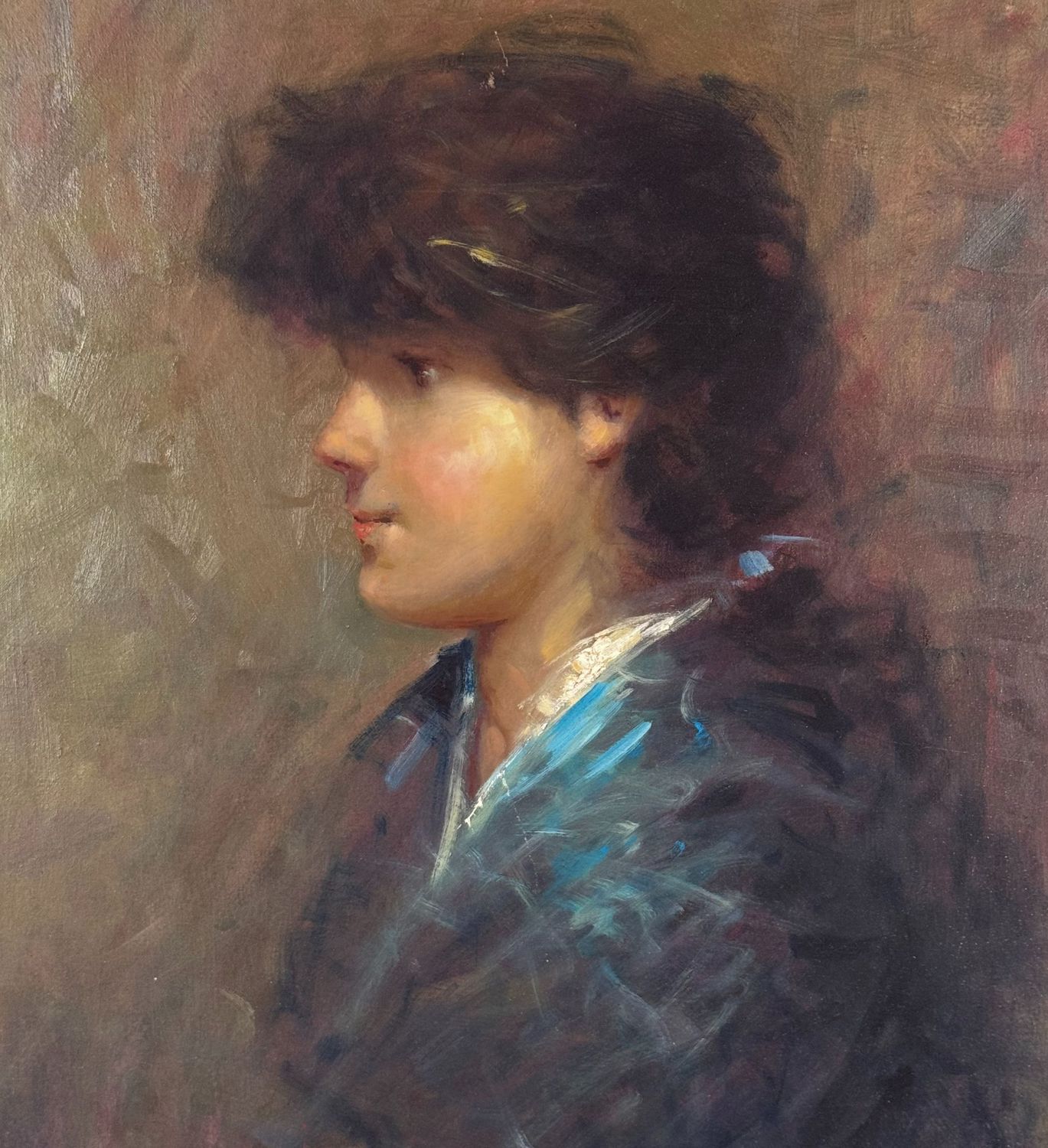 Dipinto olio su tela, periodo XX secolo scuola Italiana, raffigurante Profilo di giovane donna. Dimensioni compreso cornice: 58x67 cm. Dimensioni interno cornice: 40x50 cm. Da artista anonimo. Opera in buone condizioni.