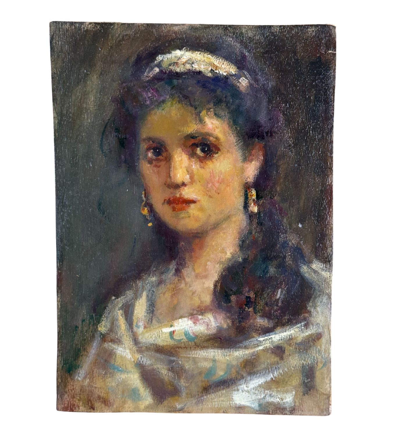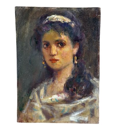Dipinto olio su tavola, periodo XX secolo, scuola Italiana, raffigurante Ritratto di donna. Dimensioni: 17x23,5 cm. Artista anonimo. Opera in buone condizioni e di ottima qualità artistica.