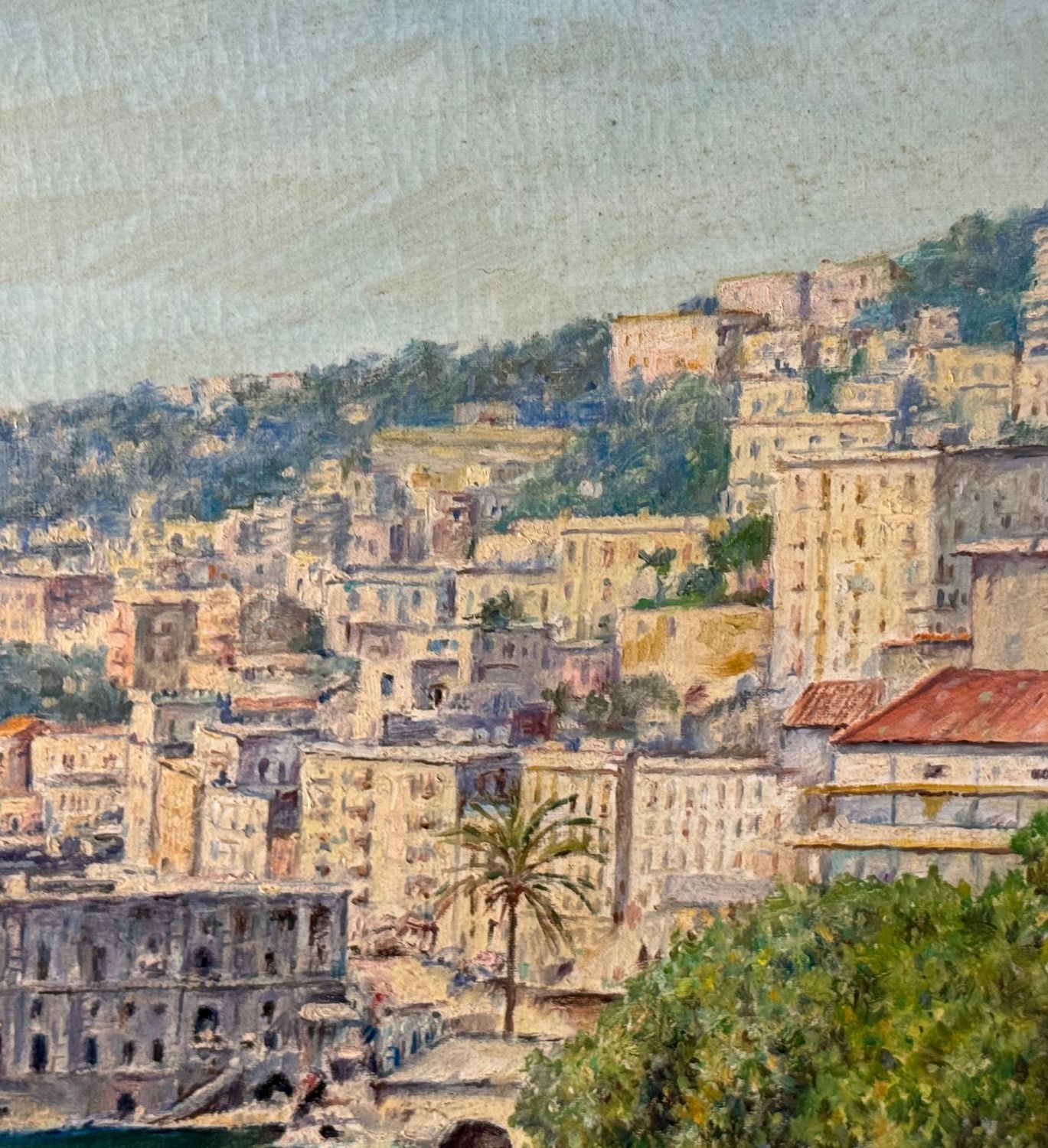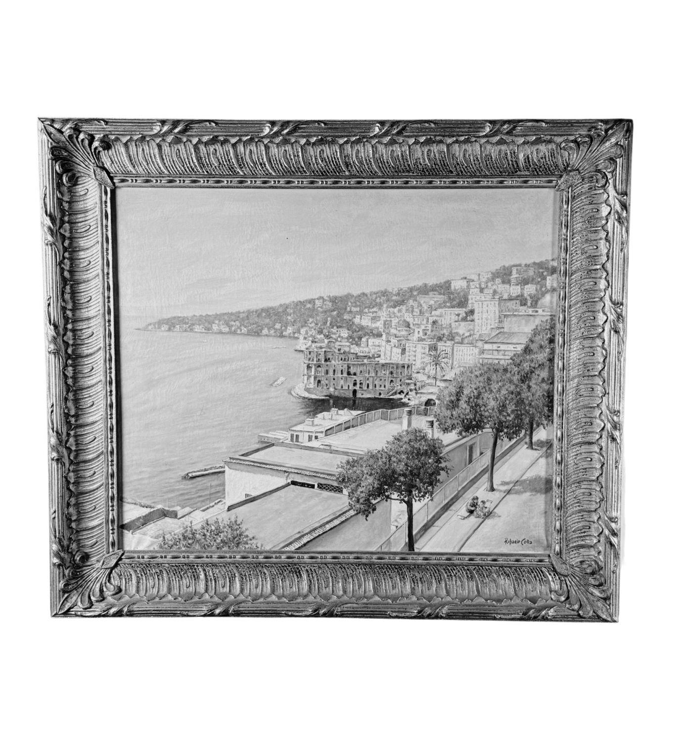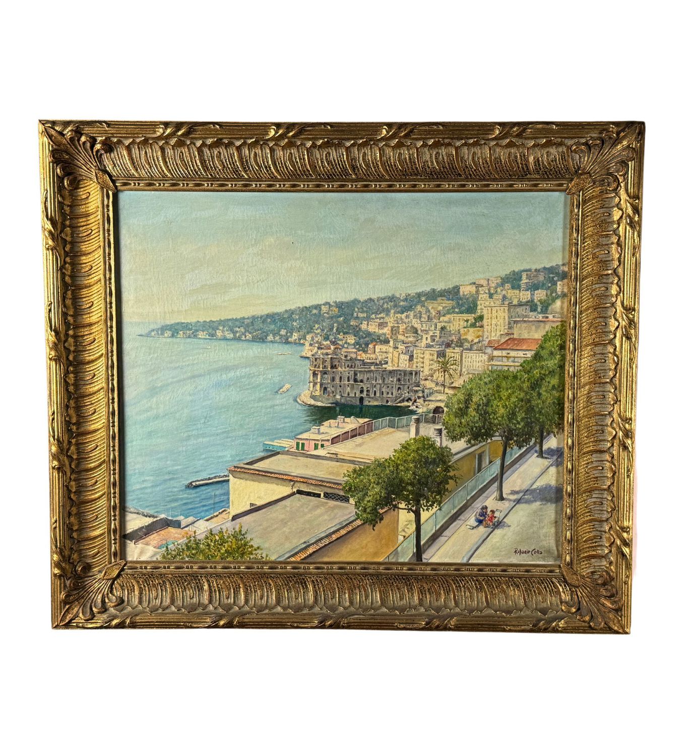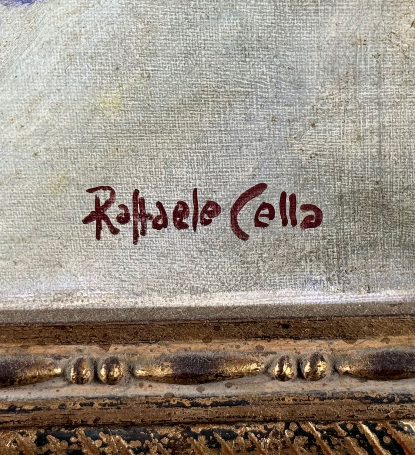 Dipinto olio su tela, periodo XX secolo scuola Italiana, raffigurante Veduta di Napoli. Dimensioni compreso cornice: 77x66 cm. Dimensioni interno cornice: 60x50 cm. Reca firma in basso a destra Raffaele Cella. Opera in buone condizioni.
