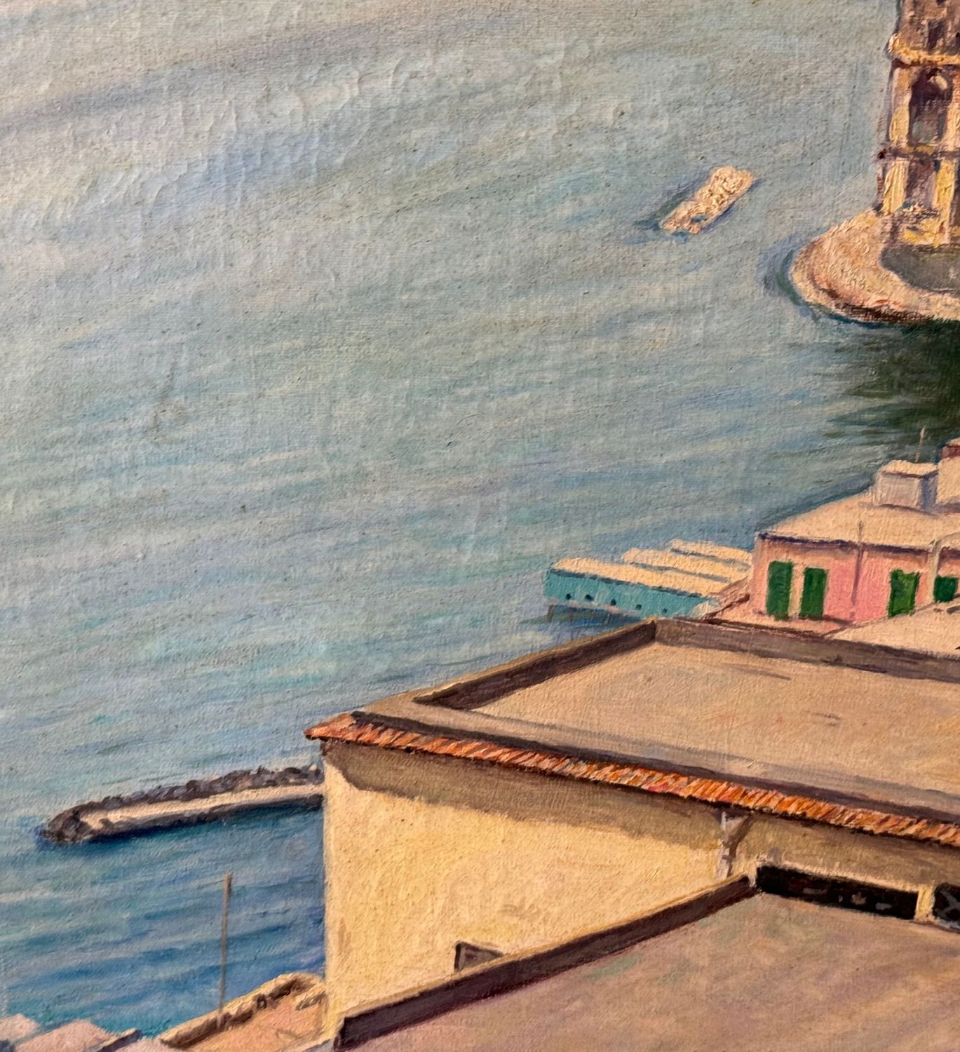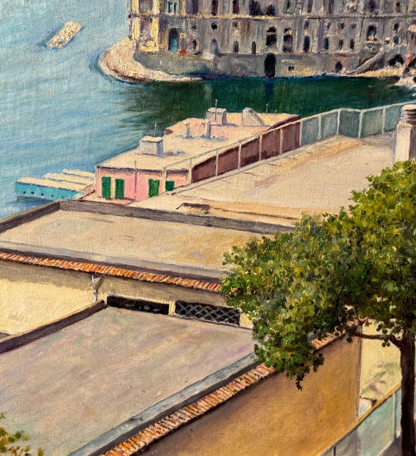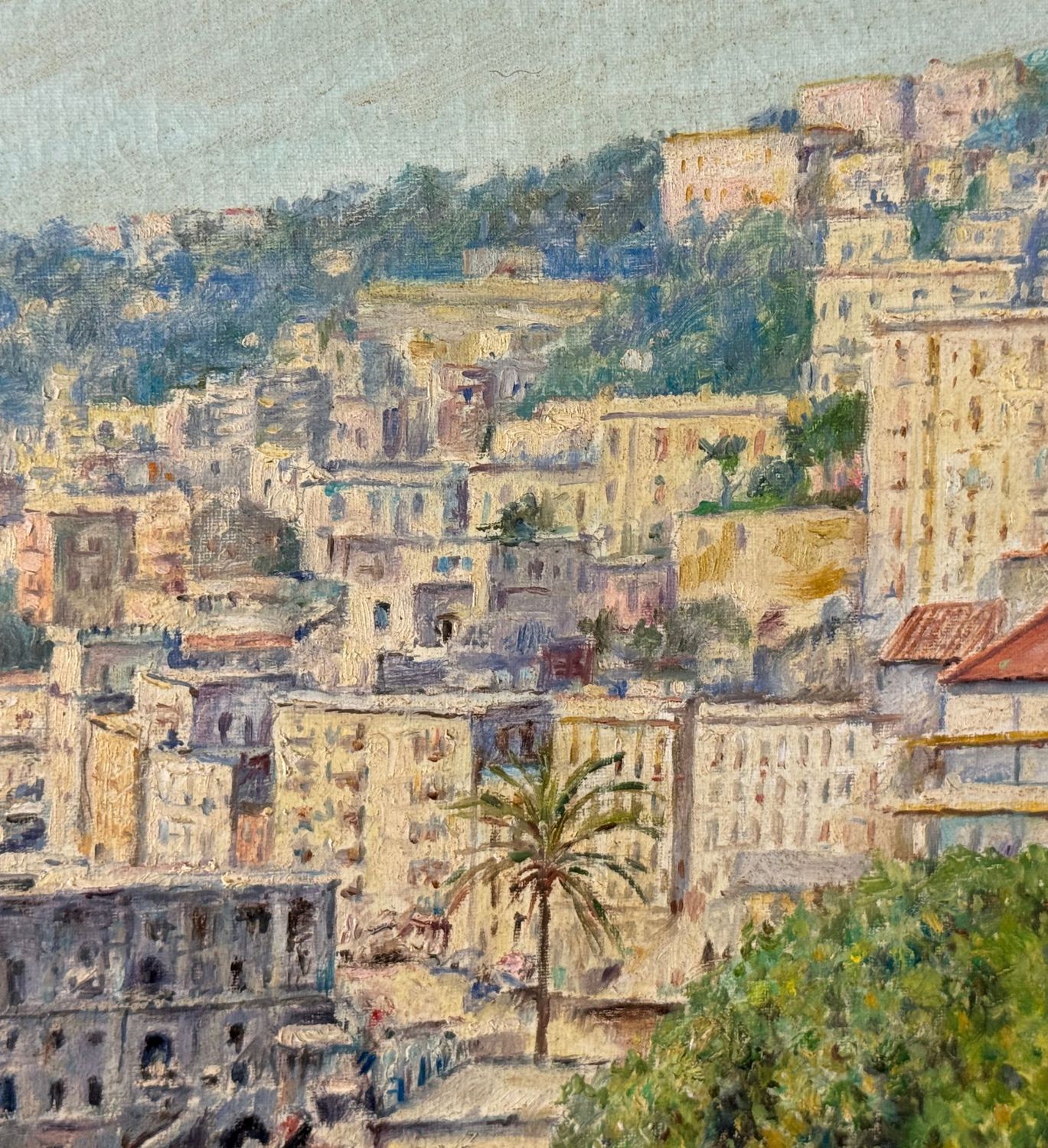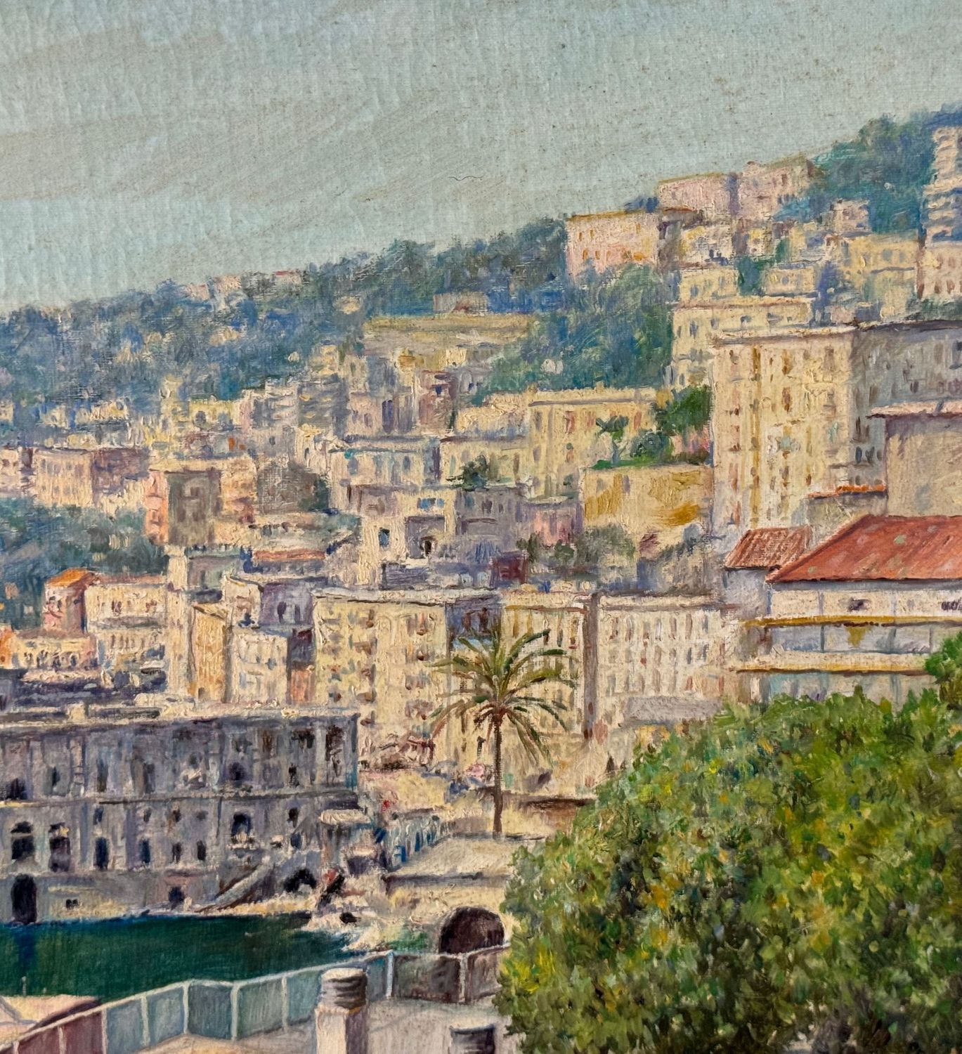 Dipinto olio su tela, periodo XX secolo scuola Italiana, raffigurante Veduta di Napoli. Dimensioni compreso cornice: 77x66 cm. Dimensioni interno cornice: 60x50 cm. Reca firma in basso a destra Raffaele Cella. Opera in buone condizioni.
