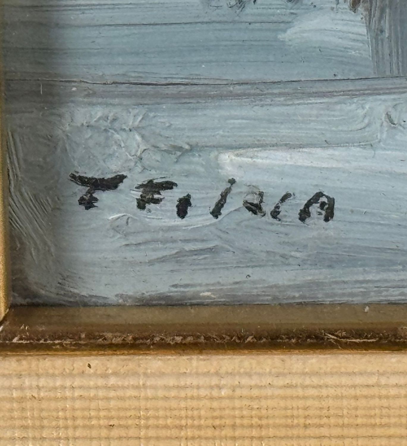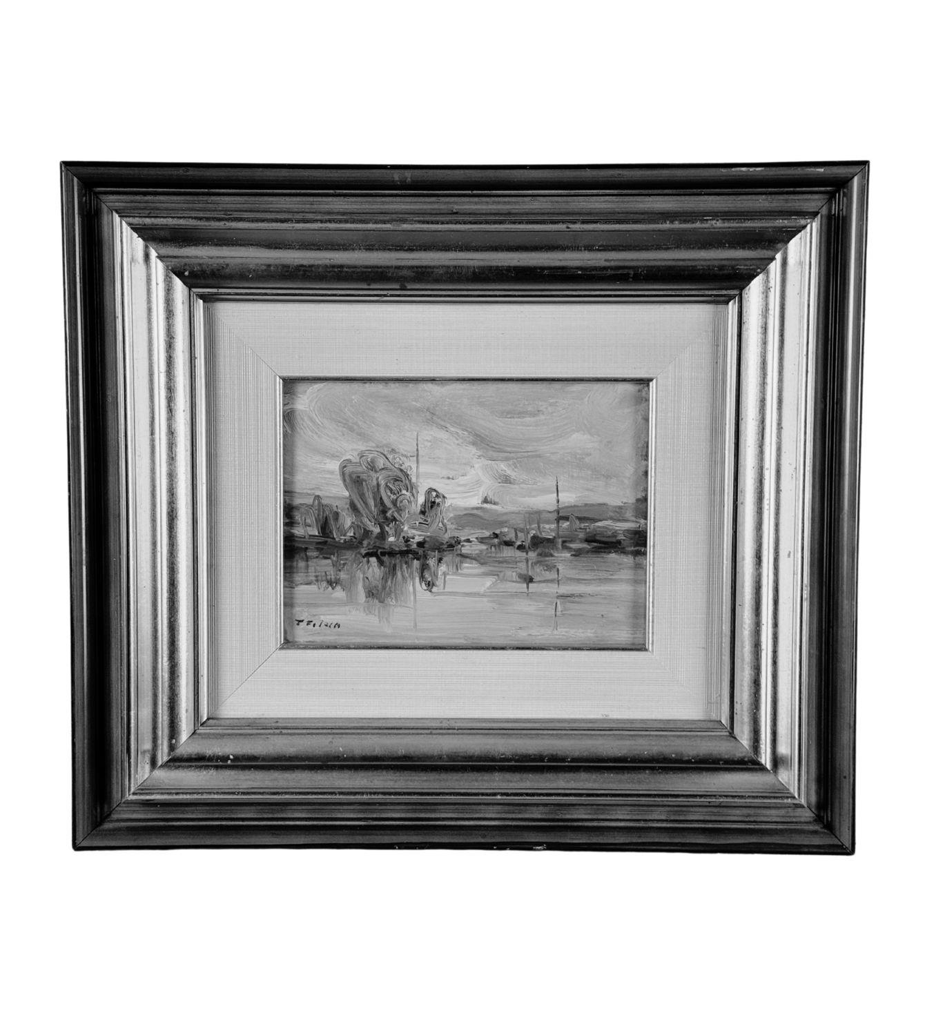 Dipinto olio su cartoncino, periodo XX secolo scuola Italiana, raffigurante Paesaggio. Dimensioni compreso cornice: 42x37 cm. Dimensioni interno cornice: 20x15 cm. Reca firma in basso a sinistra Francesco Filosa. Opera in buone condizioni.