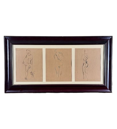 Numero di tre disegni china su carta raggruppati in una cornice, periodo XX secolo scuola Italiana, raffiguranti Donne. Dimensioni compreso cornice: 88x46 cm. Dimensioni interno cornice: 21x27 cm (dimensioni dei disegni). Artista anonimo. Opera in buone condizioni.