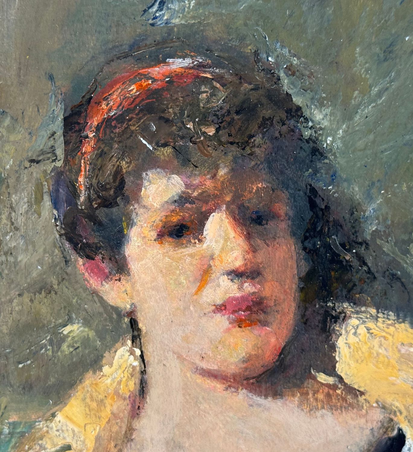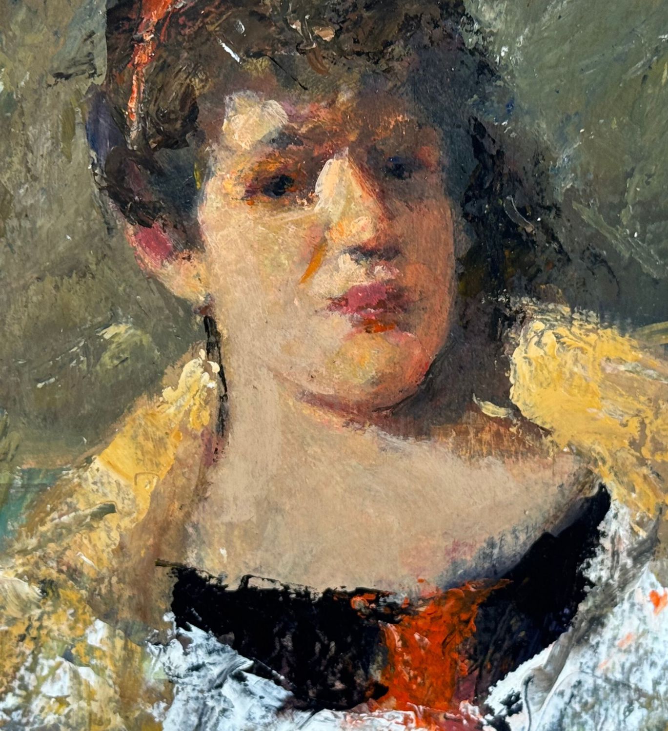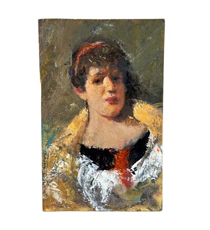 Dipinto olio su tavola, periodo XX secolo, scuola Italiana, raffigurante Ritratto di donna. Dimensioni: 15x24 cm. Artista anonimo. Opera in buone condizioni e di ottima qualità artistica.