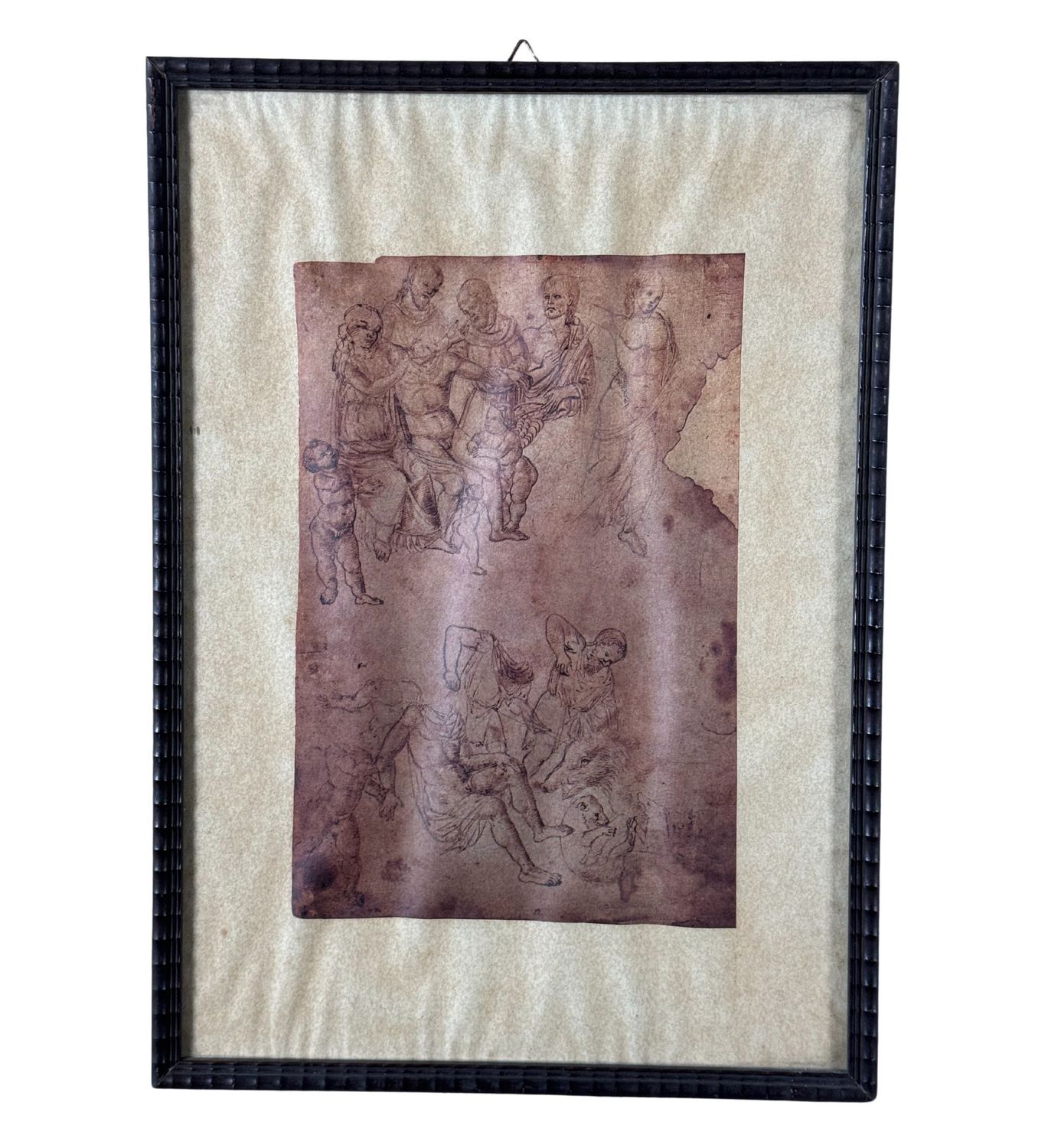 Disegno su carta, periodo XIX secolo scuola Italiana, raffigurante Personaggi di scena biblica. Dimensioni compreso cornice: 33x47 cm. Dimensioni interno cornice: 21x30 cm. Artista anonimo. Opera in buone condizioni con lievi segni di vissuto come da foto allegate.