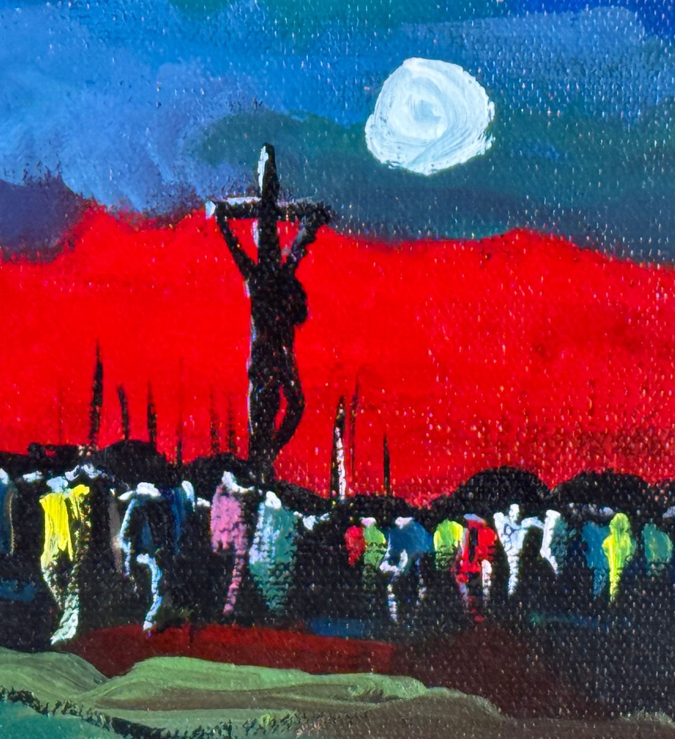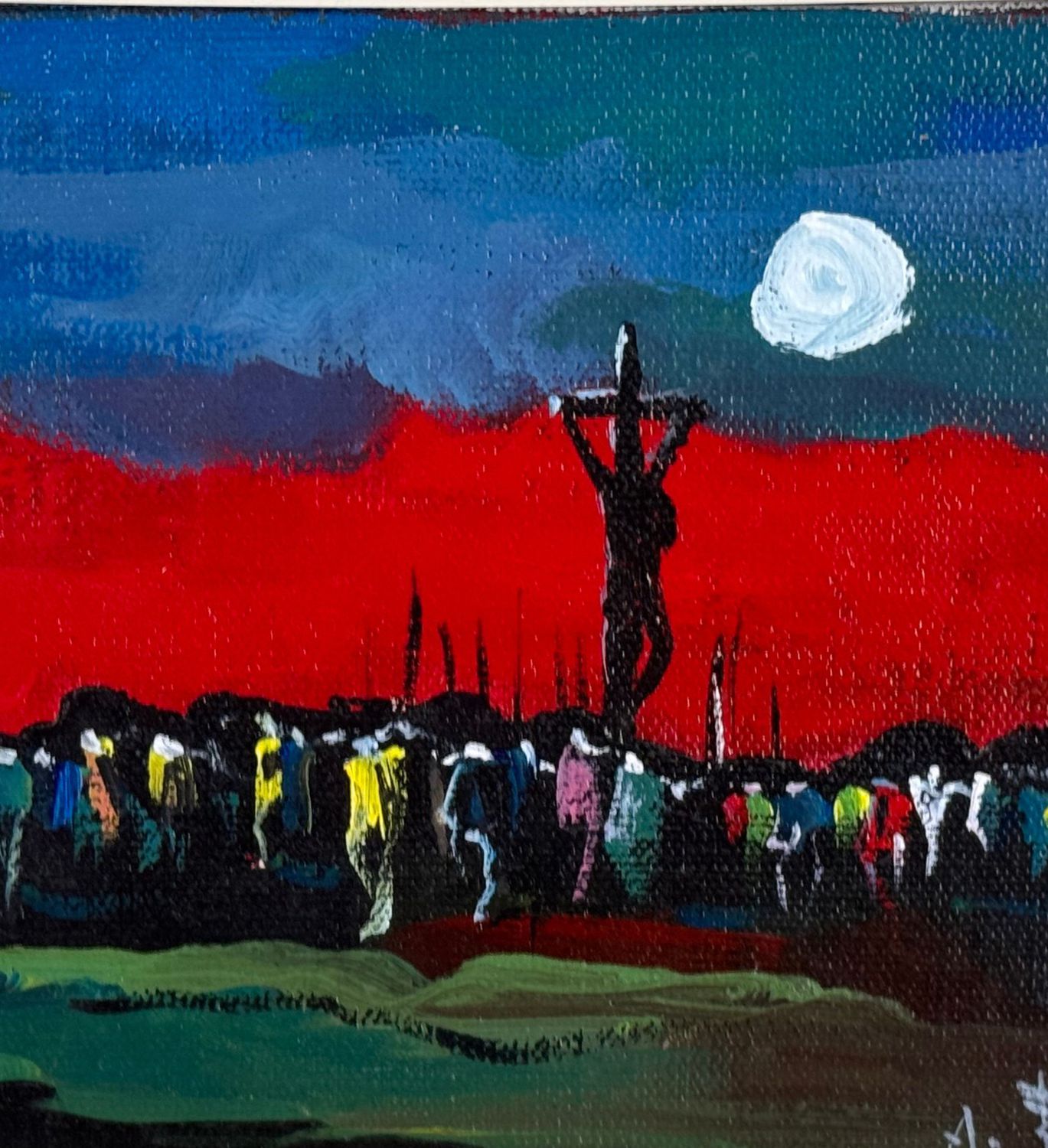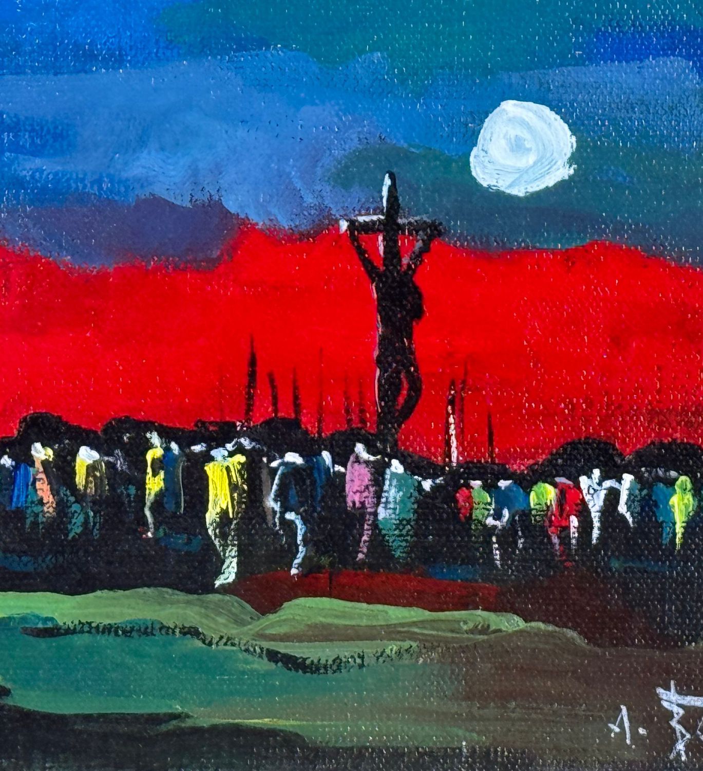 Dipinto olio su tela, periodo XX secolo, scuola Italiana, raffigurante Scena Biblica. Dimensioni compreso cornice: 54x49 cm. Dimensioni interno cornice: 20x15 cm. Reca firma in basso a destra A. Bertè. Opera in buone condizioni.