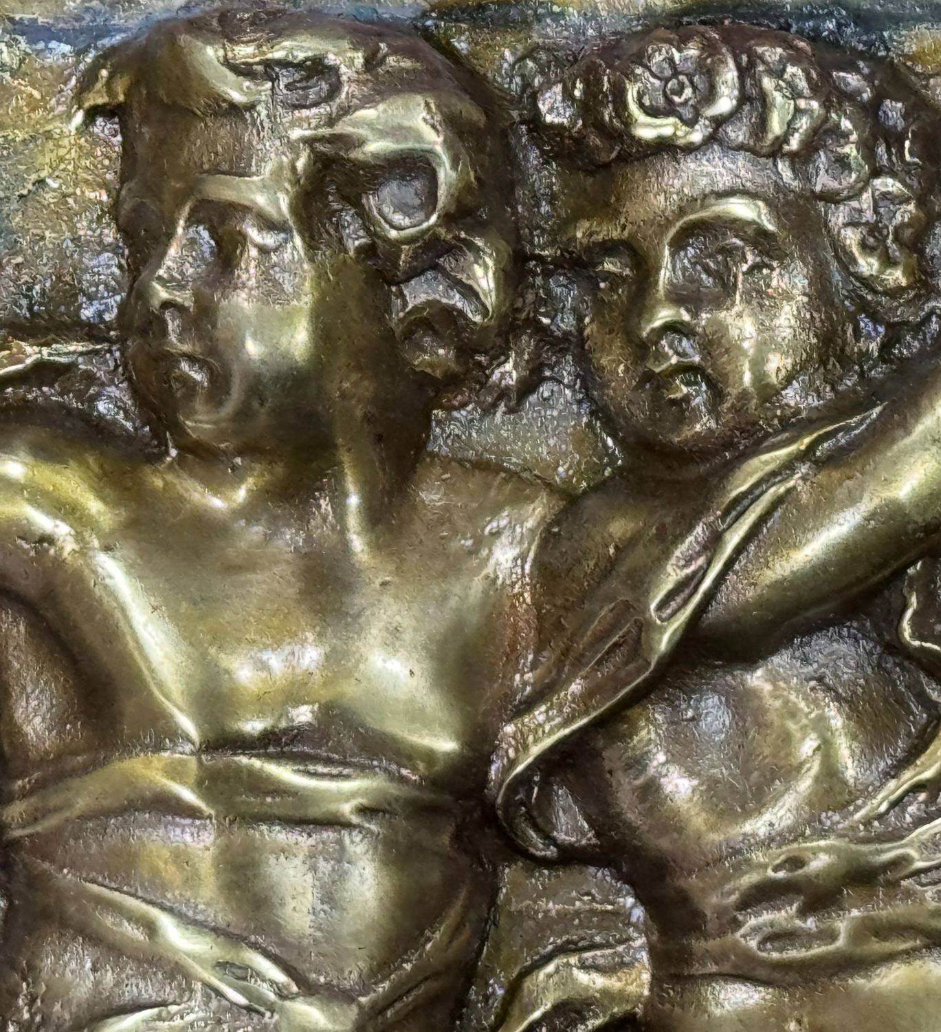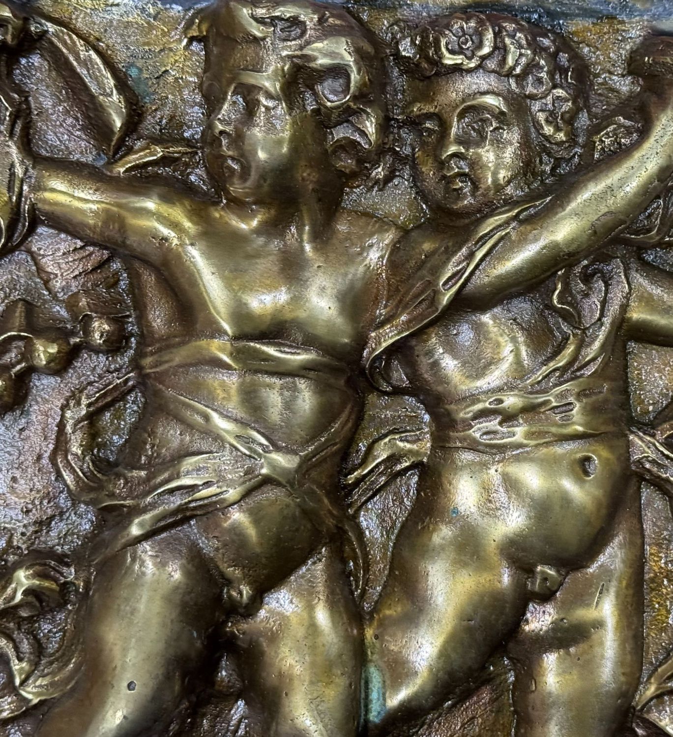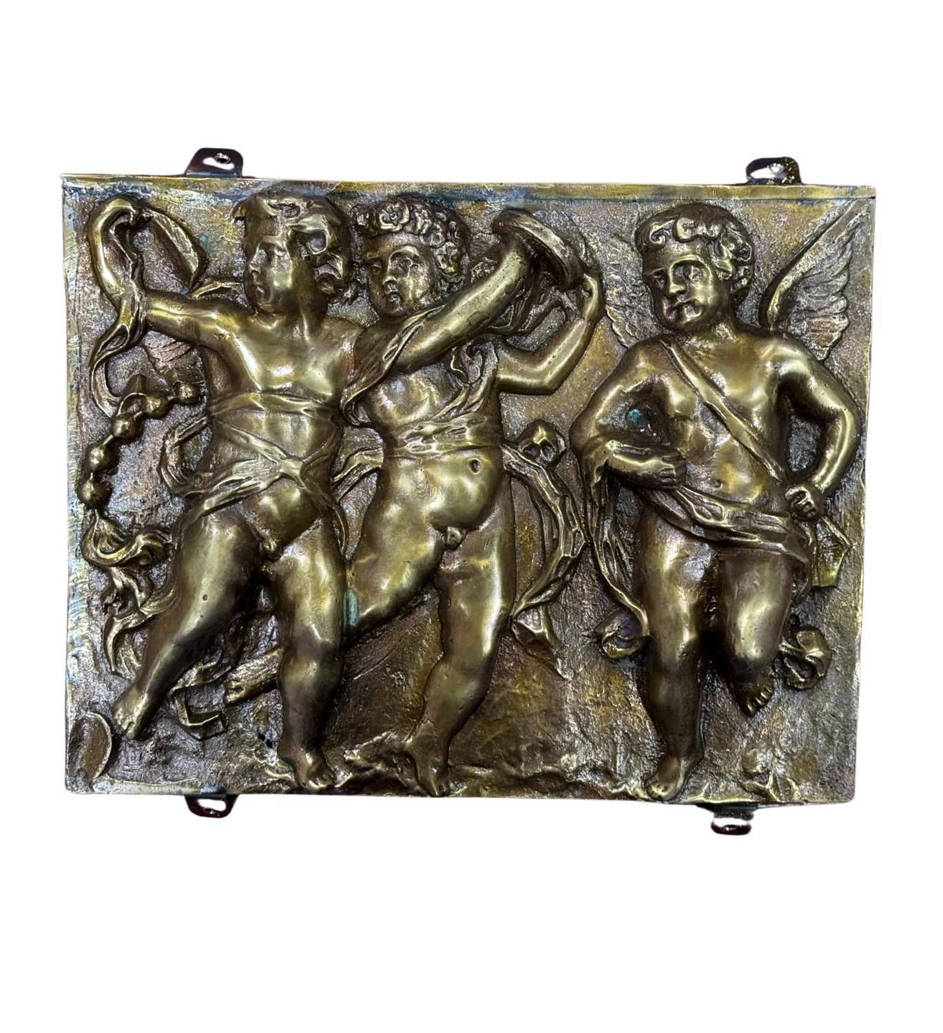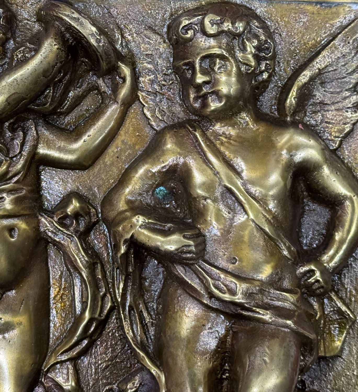 Scultura in bronzo a cera persa ,placca in bronzo a rilievo, periodo XIX secolo raffigurante Allegoria. Dimensioni: 29x23 cm. In buone condizioni.