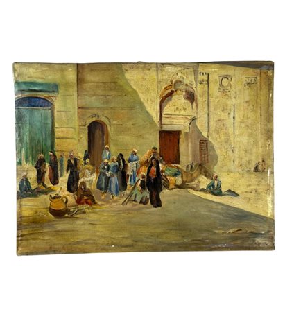 Dipinto olio su tela, periodo XX secolo scuola Italiana, raffigurante Mercato orientale. Dimensioni: 46,5x63,5 cm. Da artista anonimo. Opera in buone condizioni con lievi segni di vissuto come da foto allegate.