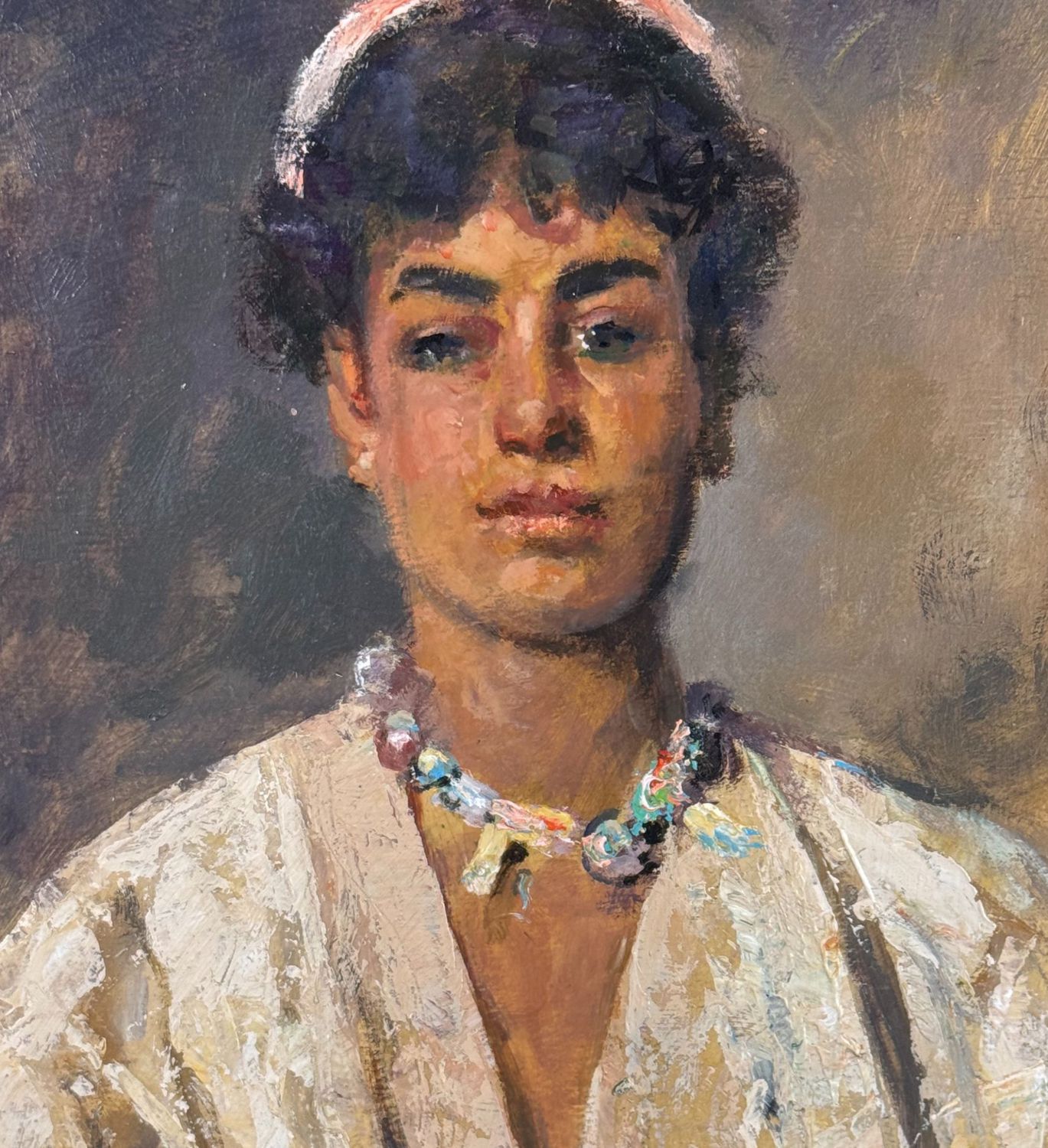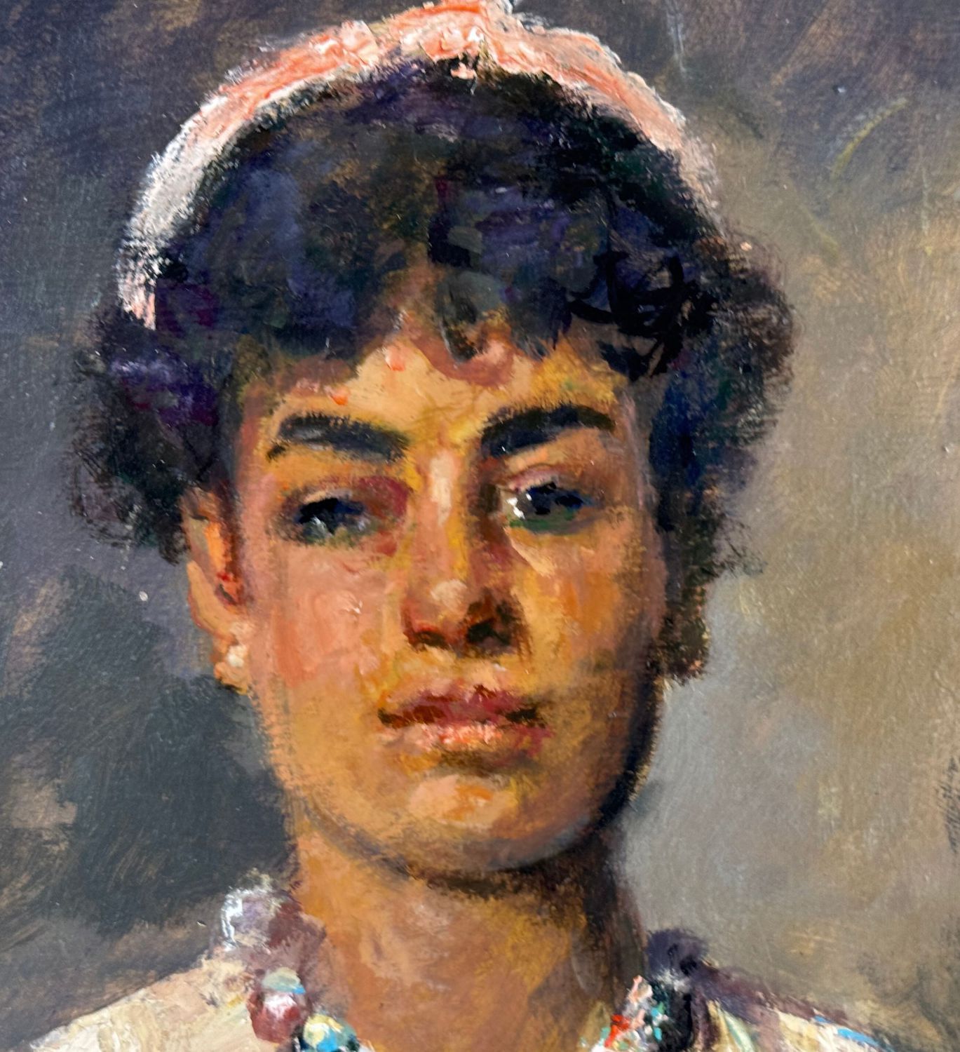 Dipinto olio su tavola, periodo XX secolo scuola Napoletana, raffigurante Ritratto di giovane. Dimensioni compreso cornice: 44x35,5 cm. Dimensioni interno cornice: 34,5x25 cm. Artista anonimo. Opera in buone condizioni.