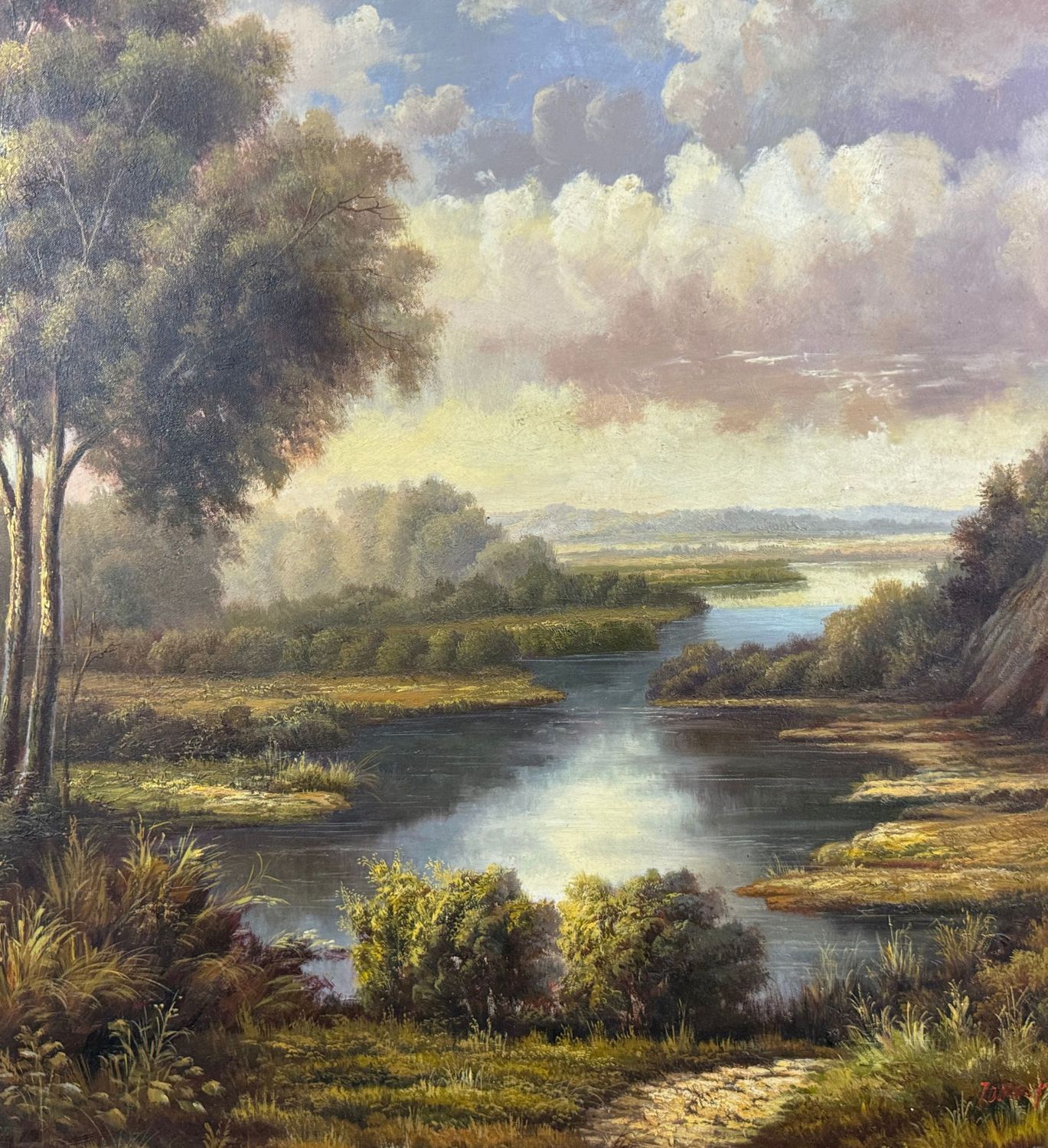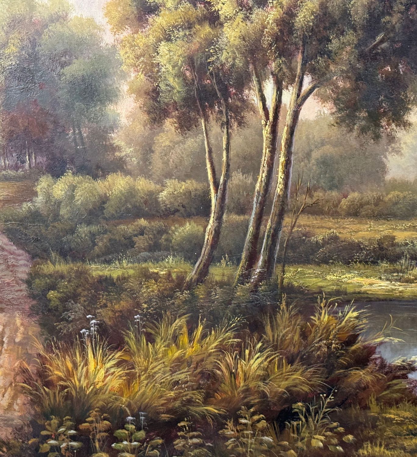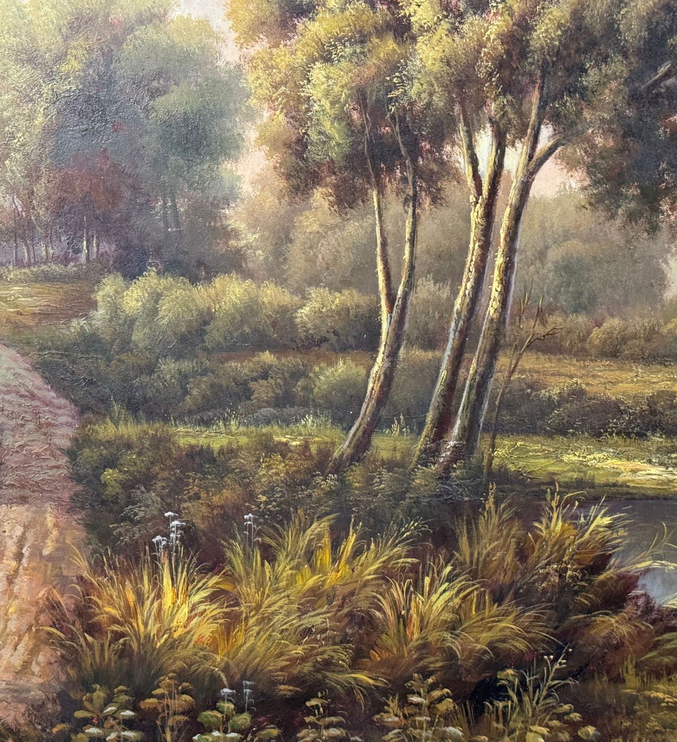 Dipinto olio su tela, periodo XX secolo scuola Italiana, raffigurante Paesaggio. Dimensioni compreso cornice: 108x138 cm. Dimensioni interno cornice: 90x120 cm. Reca firma in basso a destra da artista non identificato. Opera in buone condizioni.